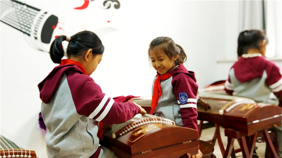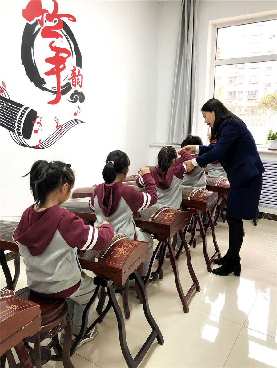 12月6日,上課鈴聲還未響起,石家莊陽(yáng)光未來(lái)國(guó)際學(xué)校二年級(jí)的孩子們?cè)缫哑炔患按貜椬嗥饋?lái),悠揚(yáng)的古箏旋律回蕩在校園,蕩漾在孩子們心中。