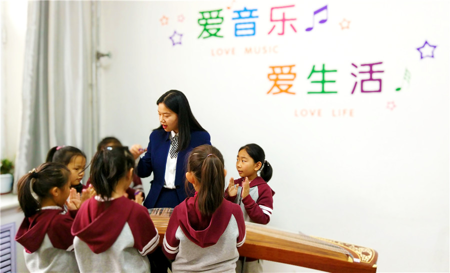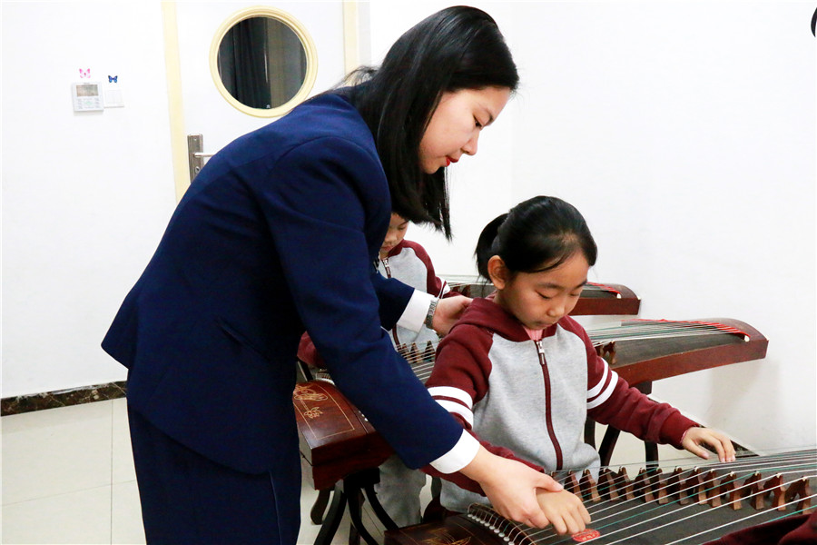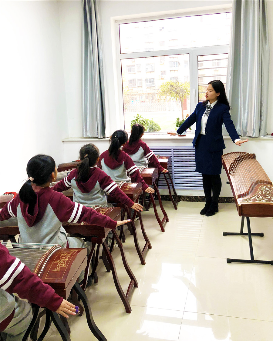 “演奏時(shí),學(xué)生要眼觀樂(lè)譜,耳聽(tīng)音樂(lè),手指在弦上準(zhǔn)確移動(dòng),整個(gè)過(guò)程需要注意力的高度集中。學(xué)習(xí)古箏,可以讓孩子變得更加專注,這對(duì)文化課的學(xué)習(xí)也至關(guān)重要。”陽(yáng)光未來(lái)國(guó)際學(xué)校藝體主任,古箏課老師劉葉介紹說(shuō)。