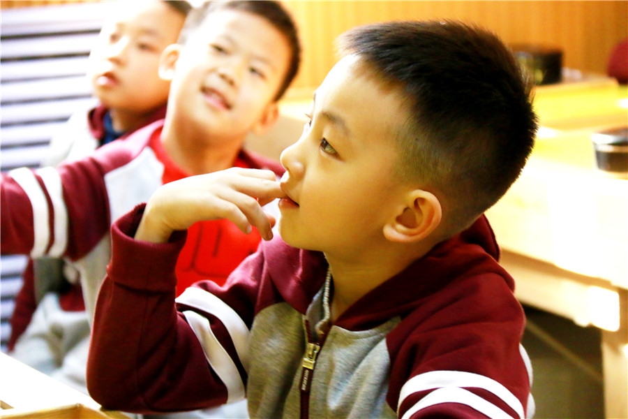 11月29日,石家莊陽光未來國際學(xué)校一年級圍棋教室內(nèi),昔日活潑好動的小朋友們一個個正襟端坐,目不轉(zhuǎn)睛地凝視著桌面上的棋盤,一只只小手游走在黑白之間。