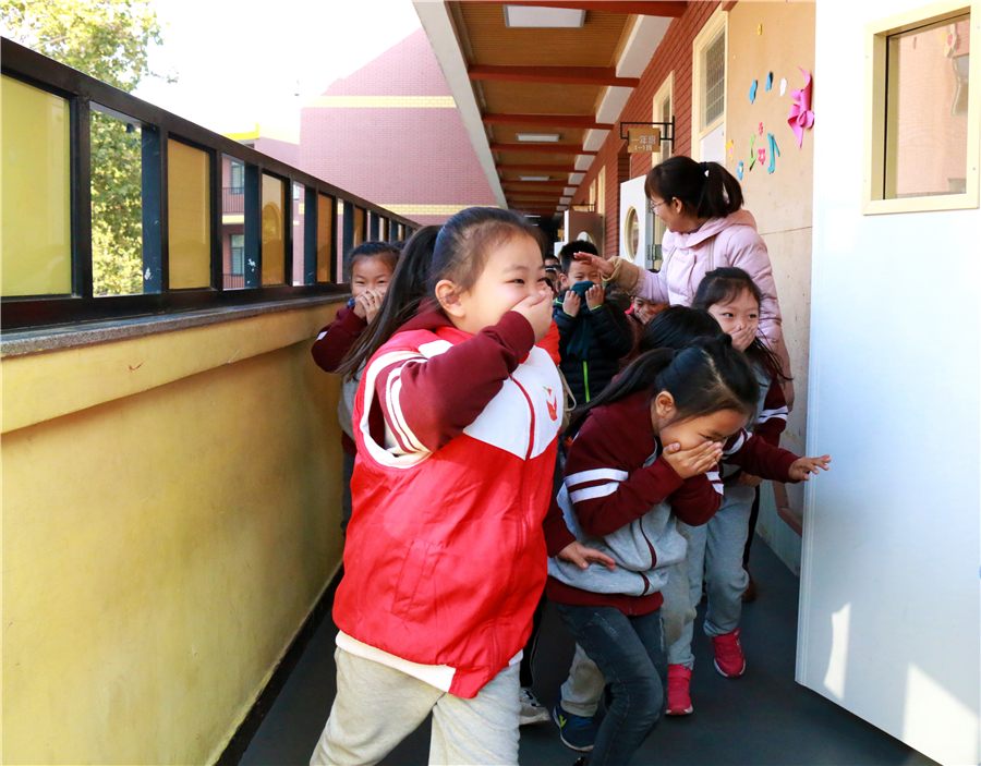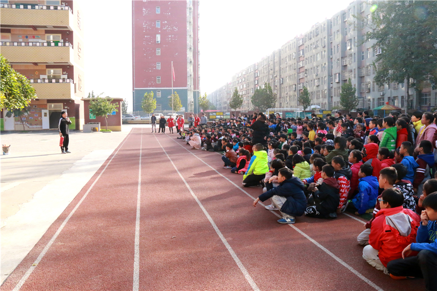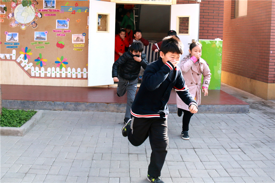 消防記心間 火警電話“119”,發(fā)生火災不亂走。 心不慌、意不亂,按照順序慢疏散。 濕毛巾,捂口鼻,身體前屈頭鄰地..... 11月9日是國家消防安全日,石家莊陽光未來國際小學真實模擬火災現場,開展消防疏散演練活動,讓孩子們在實踐中習得防火知識,增強消防安全意識。 有序 安全第一,確保有序,孩子們列隊整齊,在老師的帶領下,井然有序地排隊下樓。