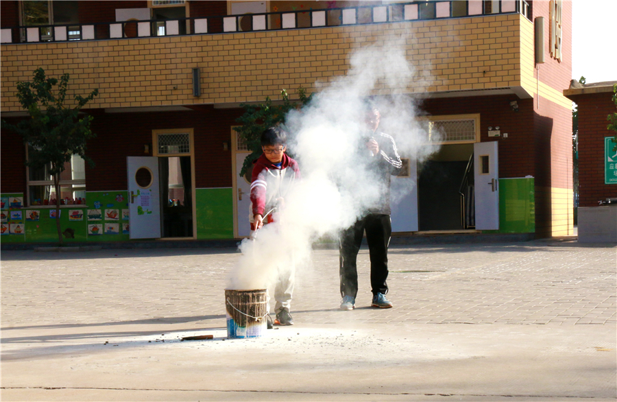 體驗 不僅要教給孩子們知識,還要讓他們學會運用。在這次生存課上,同學們都踴躍參與,爭相體驗滅火器的使用方法。