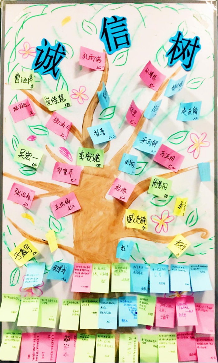 同時,各班通過主題班會等形式制定班級誠信公約,將誠信真正落實到學(xué)生生活與學(xué)習(xí)的各個方面,同時設(shè)計獎罰方案。引導(dǎo)孩子們一起做講誠信的中學(xué)生,時時刻刻講誠信,隨時隨地樹文明。
