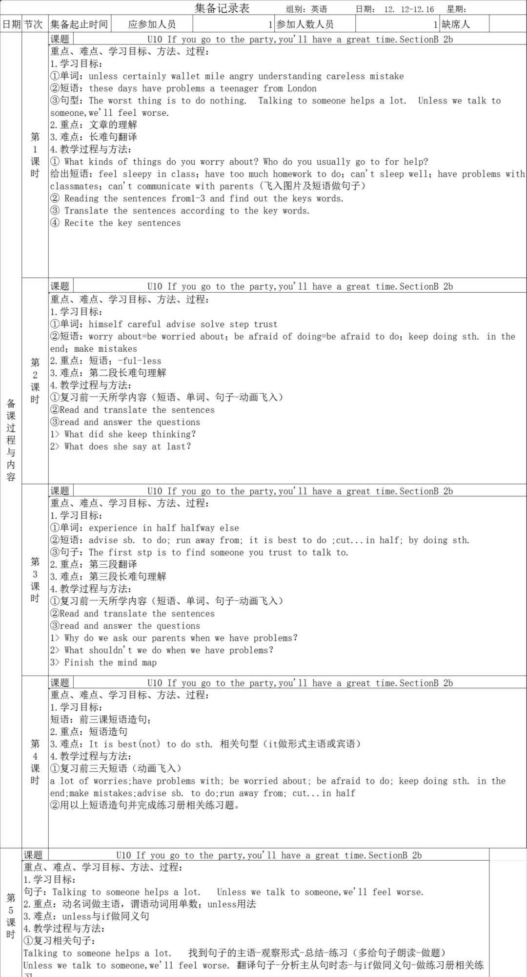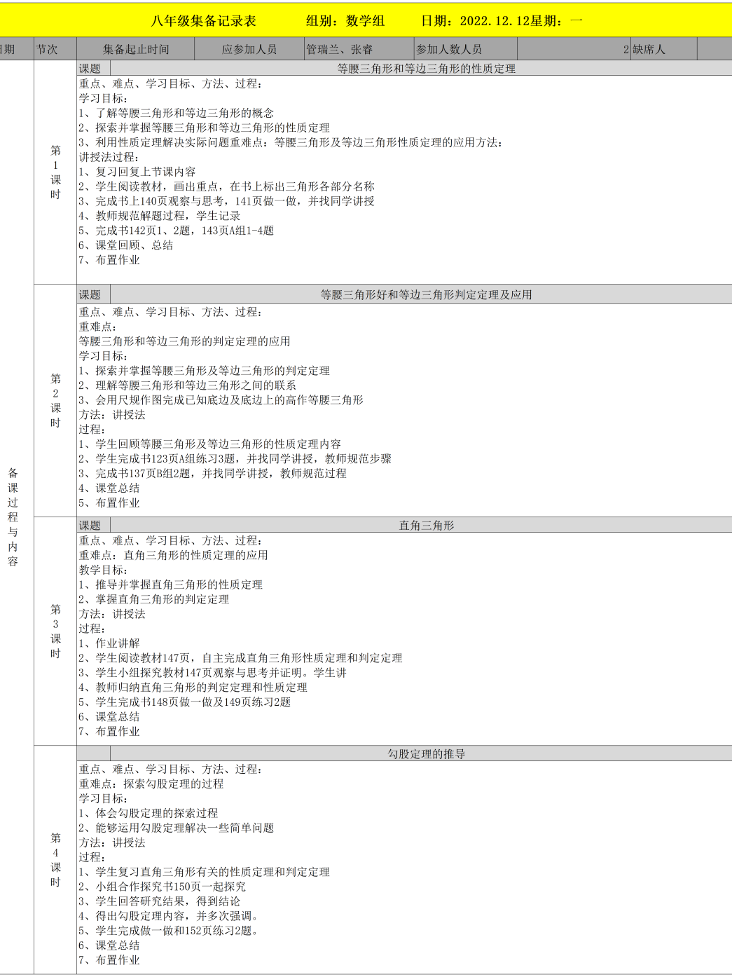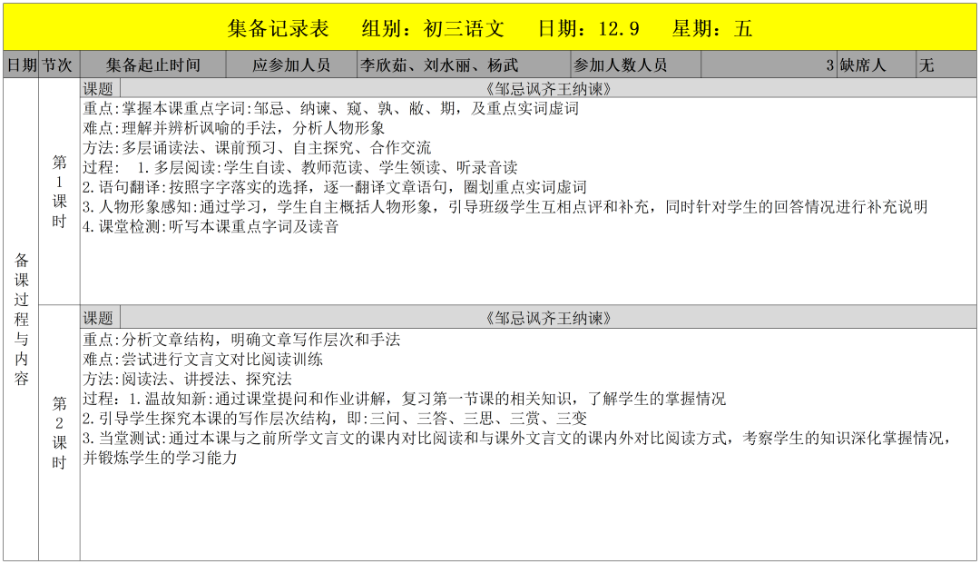 小學(xué)集備記錄