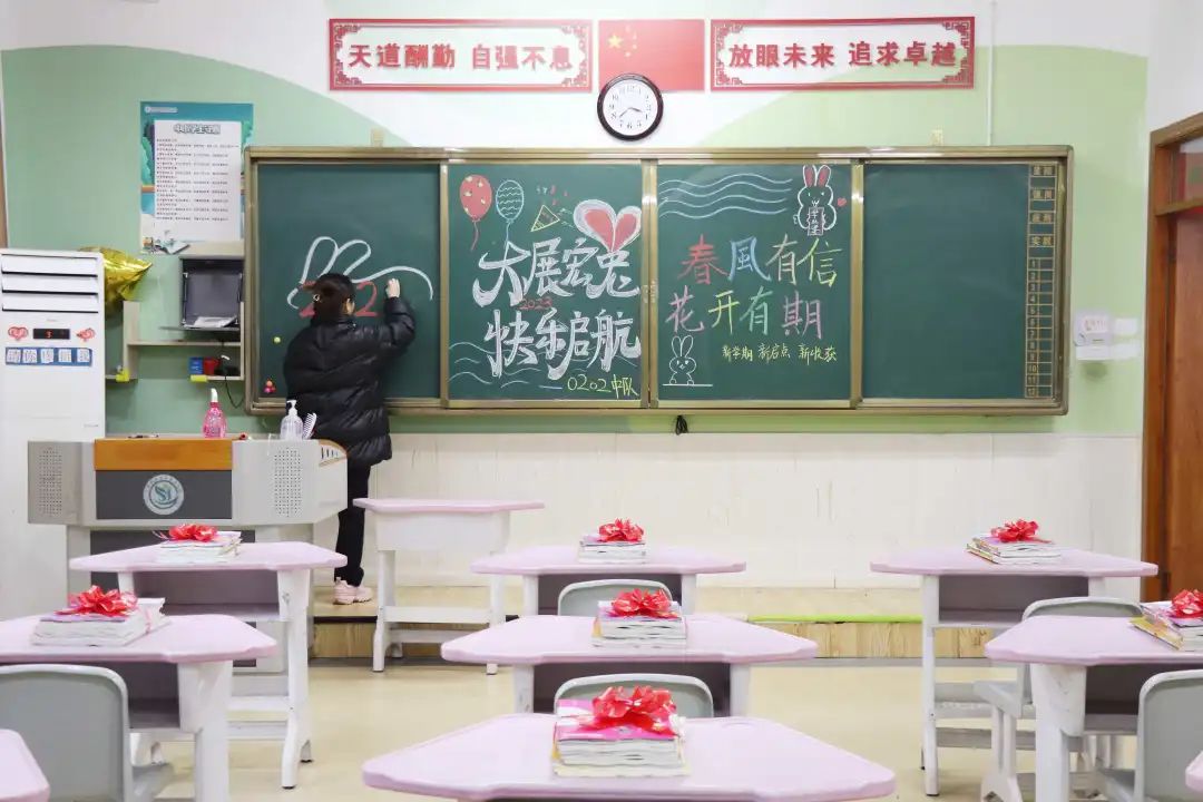 伴著春風的和弦,踏著清晨的朝陽。安順陽光未來學校為了歡迎學子們回家,老師們早早來到教室用心裝扮大家的家園。同學們的書籍精心整理,各班的板報也煥然一新。親切溫暖的問候、創(chuàng)意滿滿的教室布置、充滿驚喜的小禮物...用滿滿的儀式感開啟新學期的篇章。