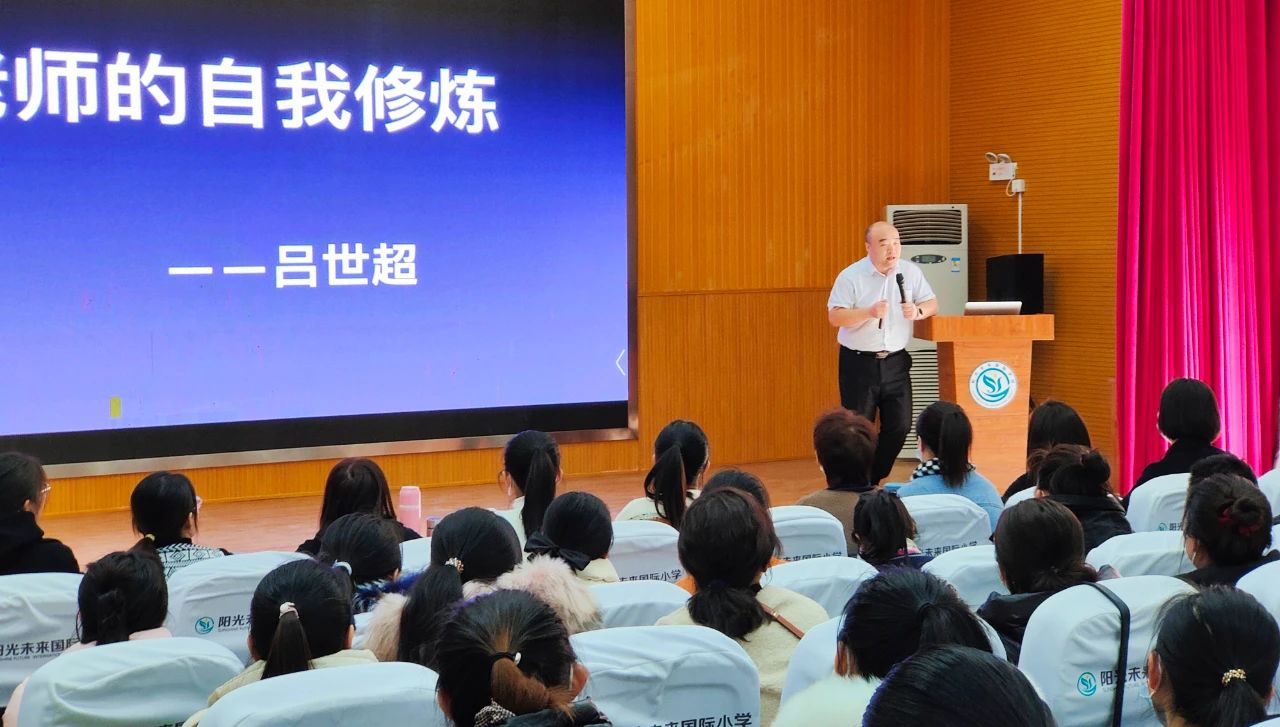 呂世超老師 專家引領(lǐng)促成長,強科培優(yōu)在行動!陽光未來小學(xué)聘請全國著名教育專家呂世超老師進(jìn)校指導(dǎo)。 “師者,以德為先”,高尚的師德師風(fēng)是教師素質(zhì)的靈魂。為落實立德樹人根本任務(wù),加強教師隊伍建設(shè),提高教師的綜合素質(zhì)和職業(yè)道德修養(yǎng),全體教師齊聚報告廳,聆聽了《一個好老師的自我修煉》師德師風(fēng)專題講座。