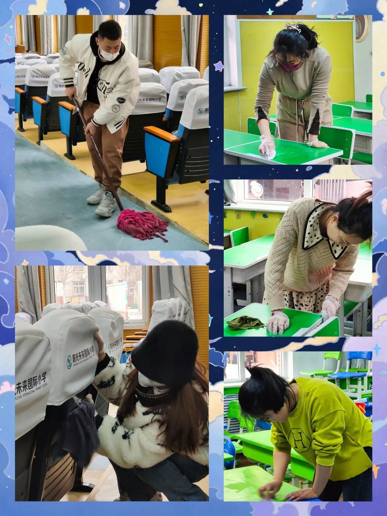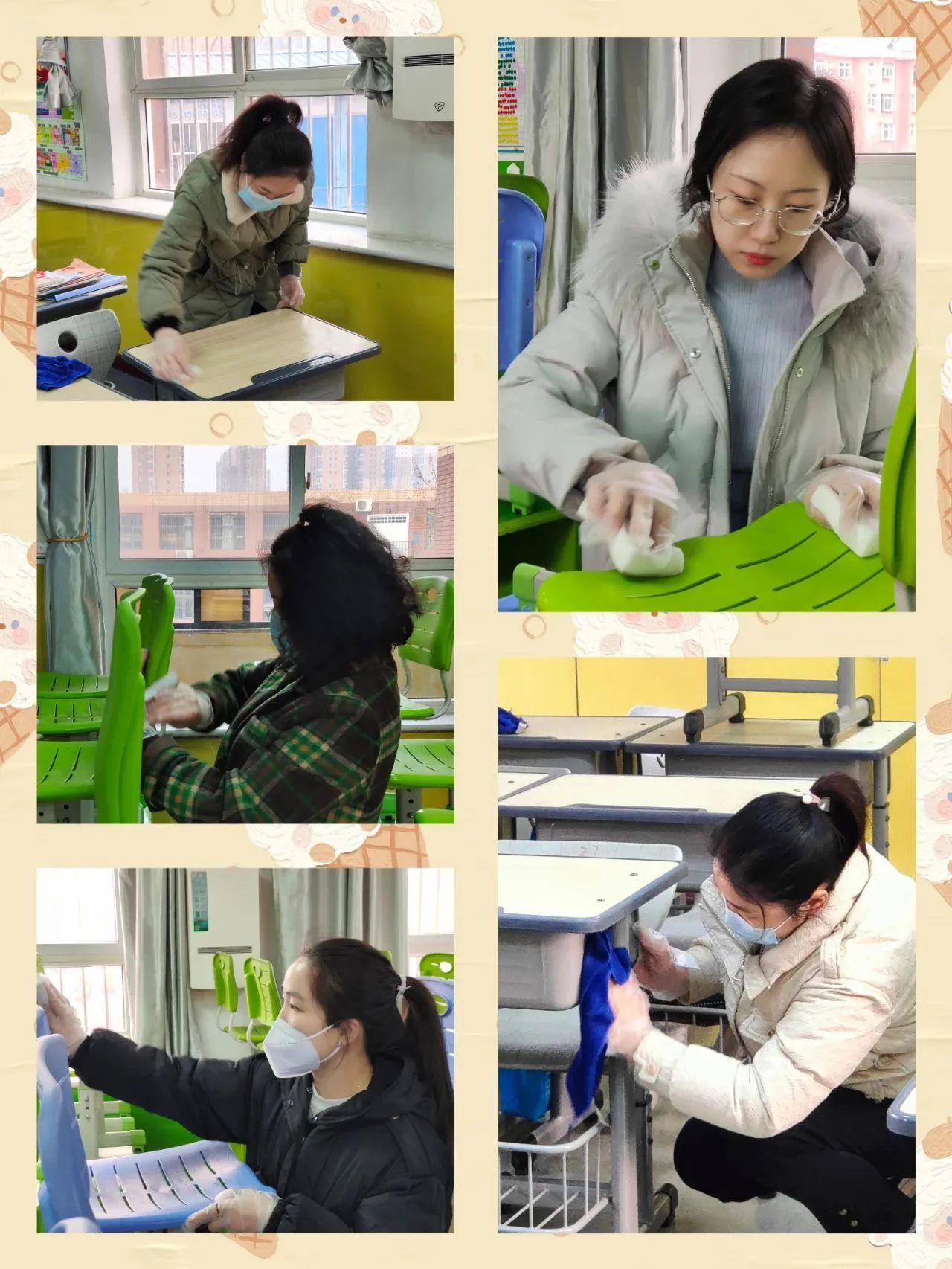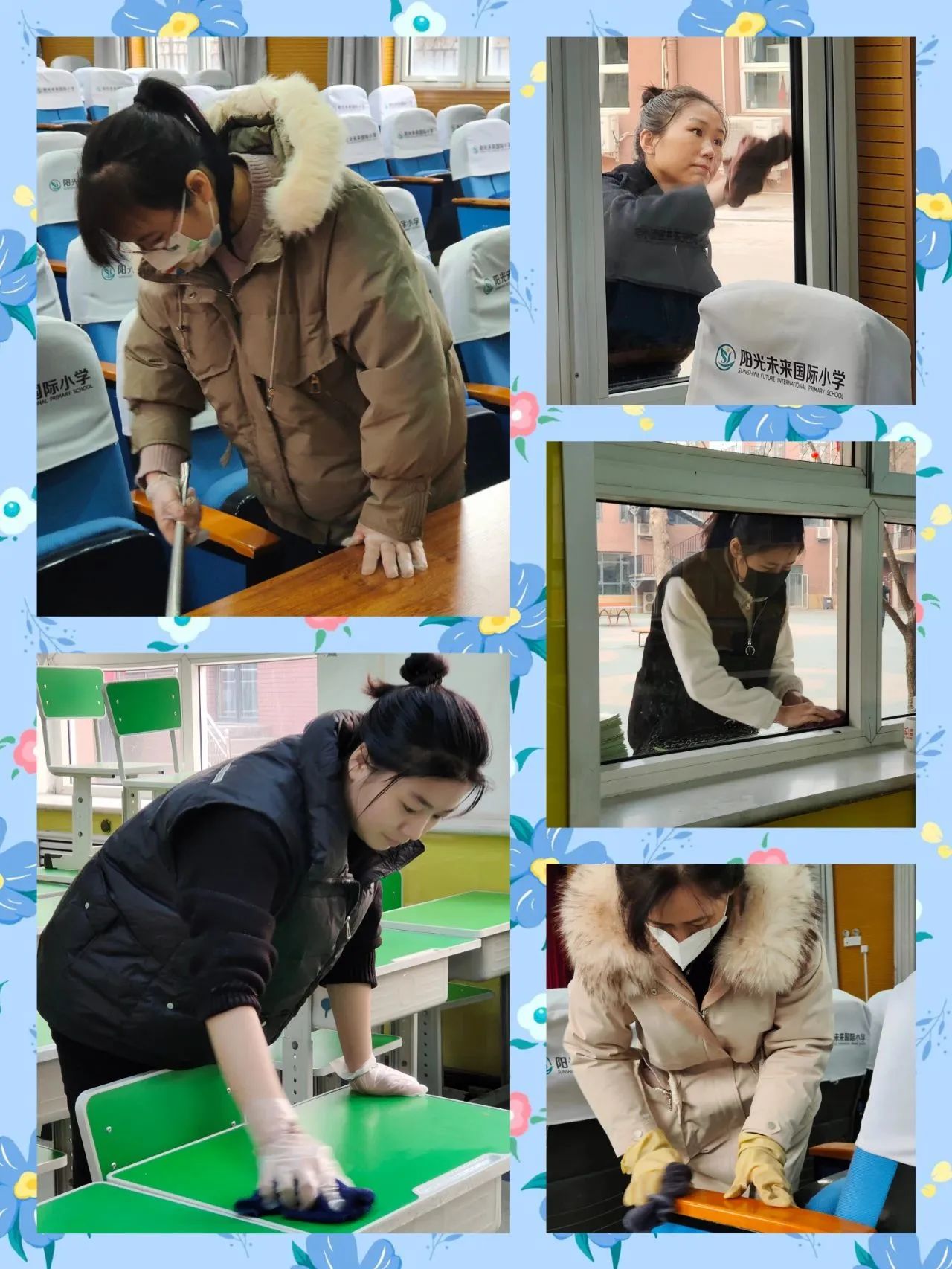 全體班主任和科任老師一起參加了此次大掃除活動。大家對校園的公共區(qū)域、教學(xué)樓、各班教室進(jìn)行了一次大規(guī)模的清潔美化、消毒消殺,不放過任何一個角落。