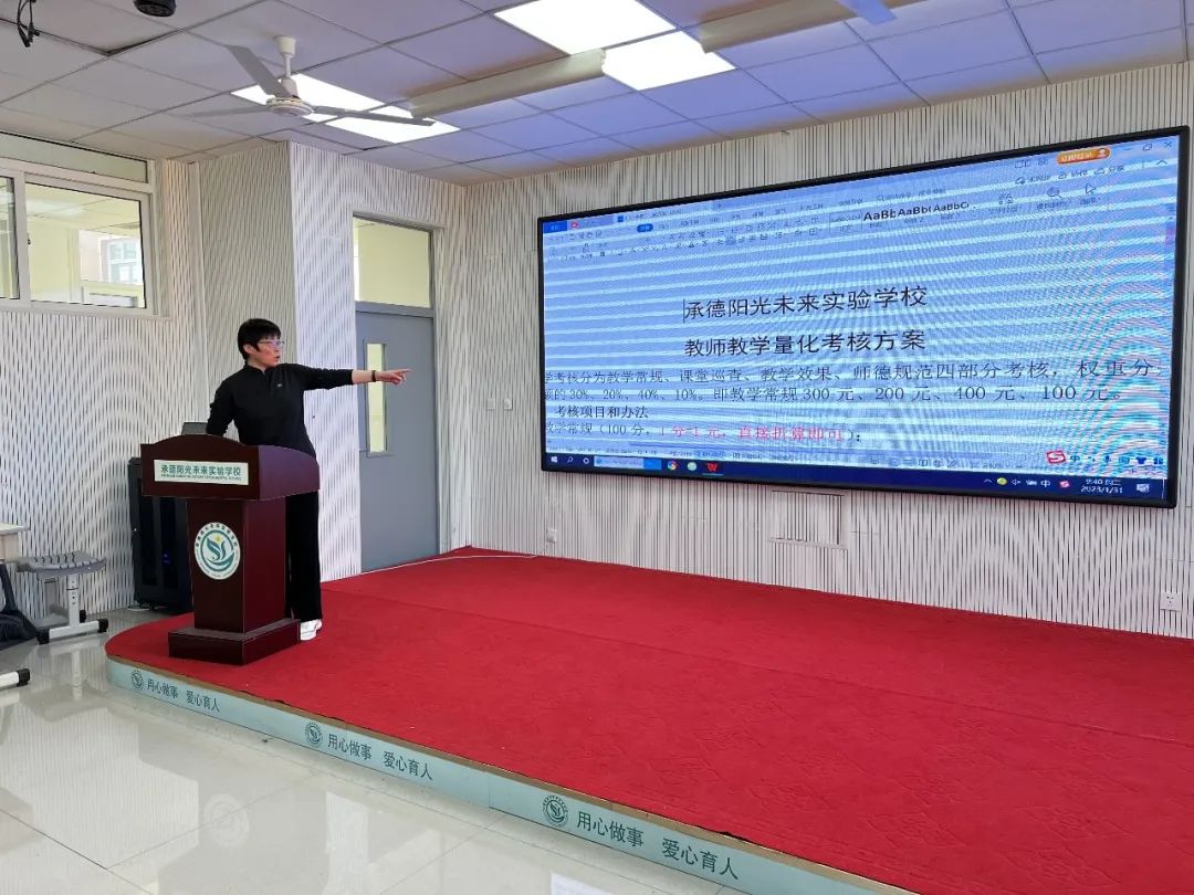 隨后,德育處佟加強(qiáng)主任對《教師教學(xué)量化考核方案》、《班主任月度工作考核辦法》進(jìn)行詳細(xì)解讀,王校長對重點(diǎn)考核項(xiàng)目進(jìn)行強(qiáng)調(diào)。