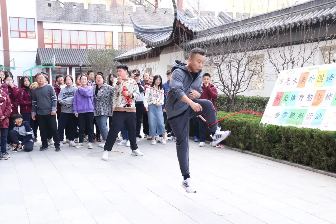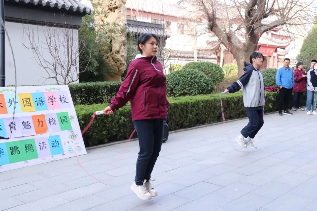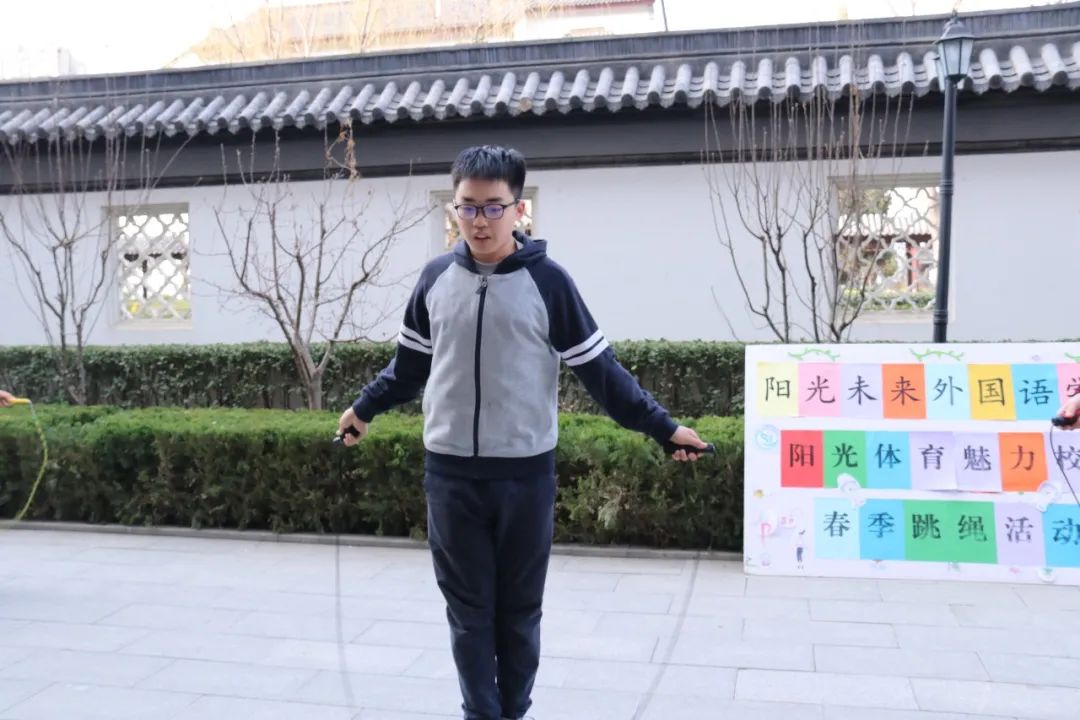 春光為序,向美而行。在春光明媚、萬物復(fù)蘇的季節(jié),為了活躍學(xué)生的業(yè)余文化生活,增強(qiáng)學(xué)生的體質(zhì),增進(jìn)各同學(xué)之間的友誼,凝人氣、聚力量。陽光未來外國語學(xué)校于3月8日至3月10日舉行了為期三天的跳繩比賽。本次比賽分為個(gè)人跳繩、萬眾齊心跳和“8”字跳大繩三個(gè)項(xiàng)目。初中部師生歡聚比賽現(xiàn)場,共享體育盛宴。 單人跳繩達(dá)人