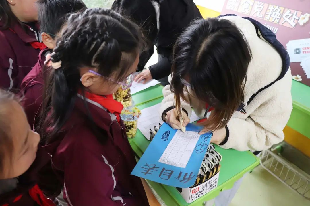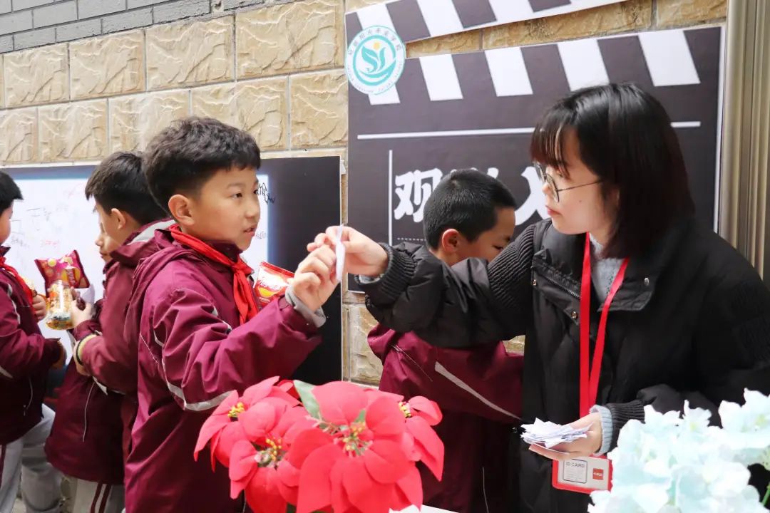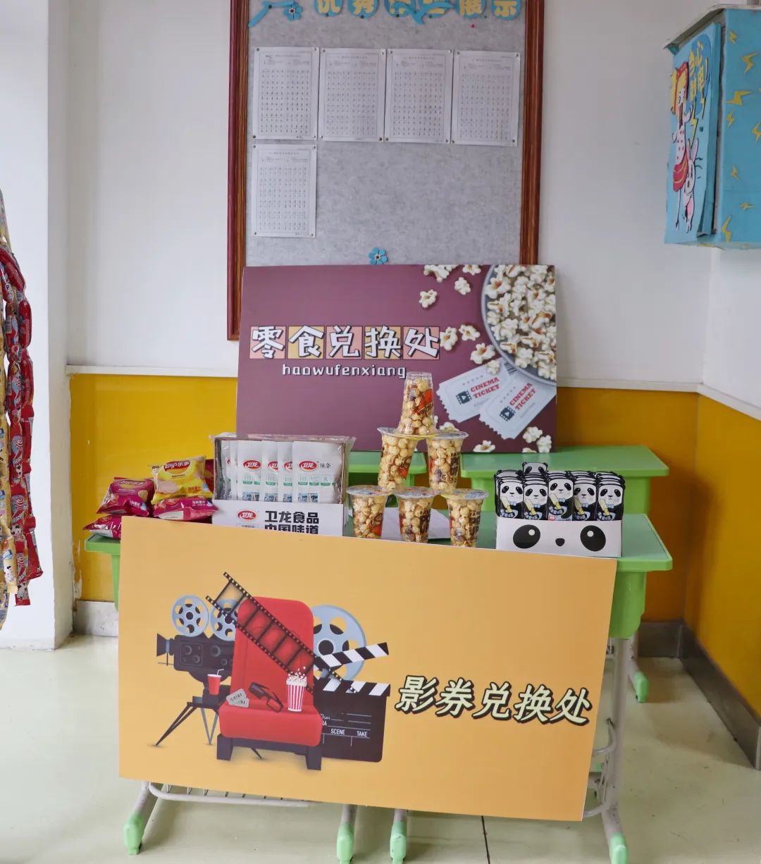 榮格說過:“一個(gè)人一生的努力,就是在整合他自童年時(shí)代起就已形成的性格。”孩子是幸運(yùn)的,還有足夠的時(shí)間與陽光的環(huán)境向著明亮那方前進(jìn)。 觀影前,各班教師已準(zhǔn)備好影券、零食兌換處,孩子們通過平時(shí)的學(xué)習(xí)成果累計(jì)積分來換取電影券與喜歡的零食并簽字留下“足跡”、合影留念,把德育內(nèi)化為孩子們自身成長、激發(fā)學(xué)習(xí)的動力。