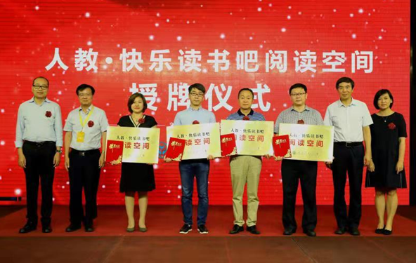 在此次發(fā)布會上,人教社為首批成立閱讀空間的內(nèi)蒙古新華書店有限責任公司、武漢新華書店股份有限公司、湖北省新華書店(集團)有限公司荊門書城以及青島書城文化發(fā)展有限責任公司舉行了“人教•快樂讀書吧”閱讀空間的授牌儀式。