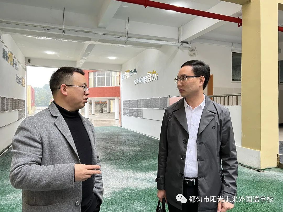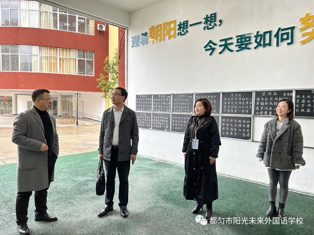 向順局長(zhǎng)通過聽取匯報(bào)、實(shí)地查看,對(duì)學(xué)校各項(xiàng)工作給予高度肯定,希望我校在下一步的工作中要深入領(lǐng)會(huì)把握黨和國(guó)家的教育政策,把黨的教育方針和社會(huì)主義核心價(jià)值觀融入到課程設(shè)置中,做到全校師生入腦入心;加強(qiáng)學(xué)校黨建工作,迅速建立黨支部,發(fā)揮黨建引領(lǐng)作用;校園安全方面,要常態(tài)化抓好疫情防控和校園安全、學(xué)校食堂食品安全,由于地理位置的特殊性,要加大安全標(biāo)識(shí),加強(qiáng)問題排查,做到及時(shí)處置。向順局長(zhǎng)希望,我校充分發(fā)揮集團(tuán)優(yōu)質(zhì)教育資源優(yōu)勢(shì),持續(xù)提升辦學(xué)質(zhì)量和內(nèi)涵,不斷將學(xué)校推向更高的發(fā)展層次,把陽(yáng)光教育品牌打造得更亮更響,為促進(jìn)都勻教育事業(yè)蓬勃發(fā)展貢獻(xiàn)力量。