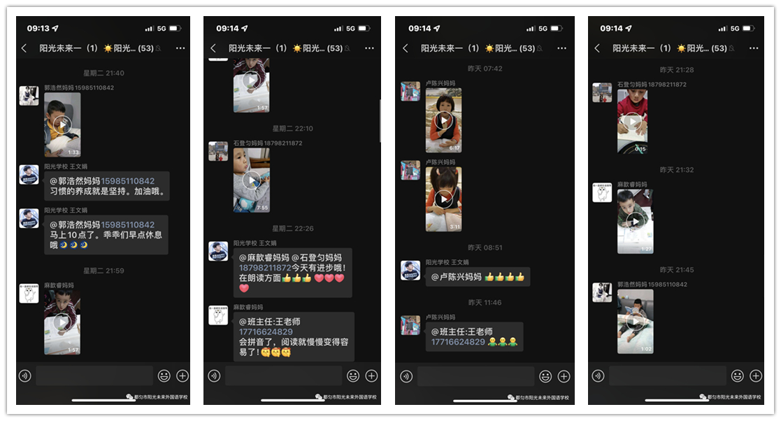良好的閱讀習(xí)慣不僅在學(xué)校,還延伸到了家庭中去,一年級(jí)走讀的同學(xué)每天回到家以后,都會(huì)在班級(jí)群里讀書“打卡”。