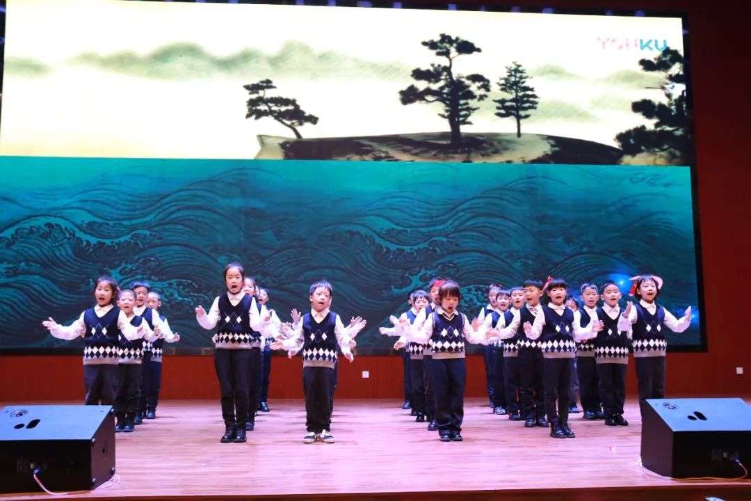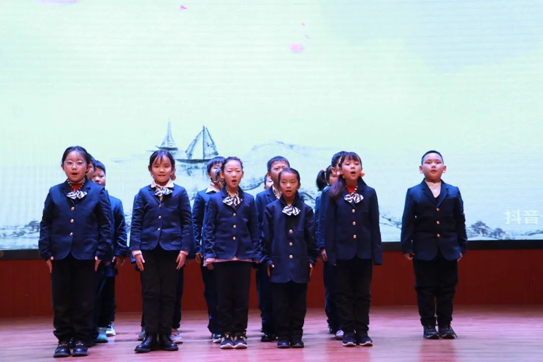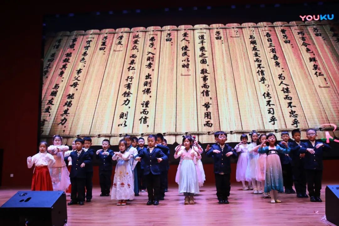 一年級(jí)(1)班 《弟子規(guī)》——信 古詩《詠鵝》 在上場時(shí)口號(hào)響亮整齊,他們的朗誦加入了自己的創(chuàng)作創(chuàng)新,老師和每位孩子都穿上了古色古香的漢服,仿佛穿越了時(shí)空。在古箏行云流水的旋律之間與朗朗誦讀聲結(jié)合在一起相得益彰!贏得場內(nèi)熱烈掌聲!