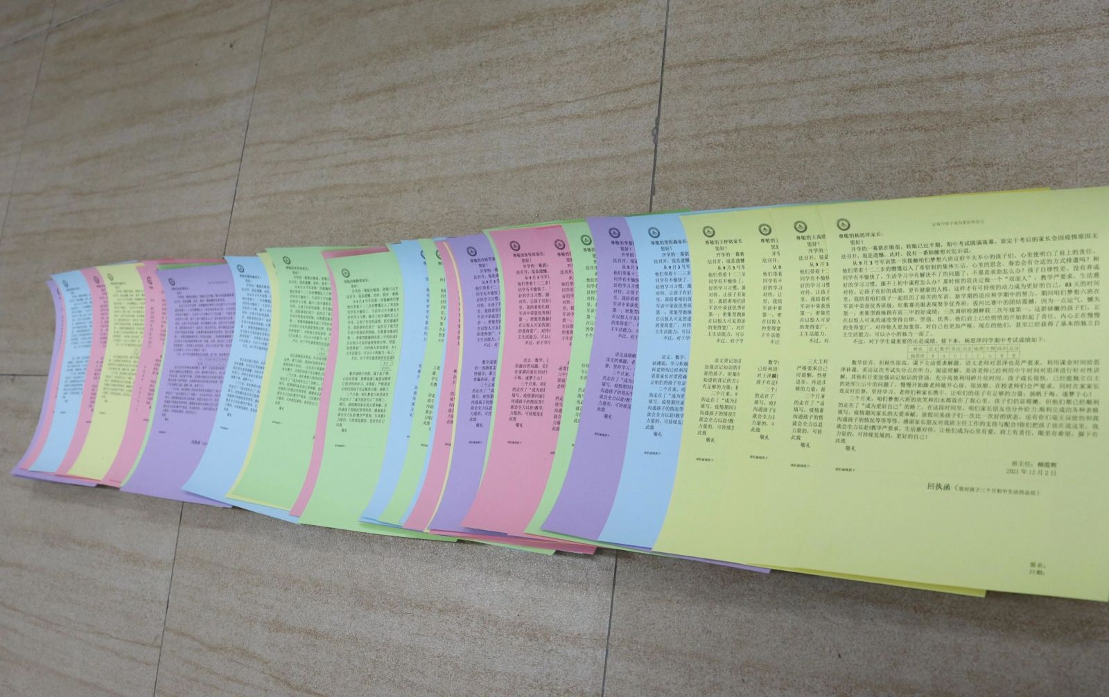 班主任們?yōu)槊恳晃患议L寫了一封信,詳細的讓家長知道孩子的學習生活情況。