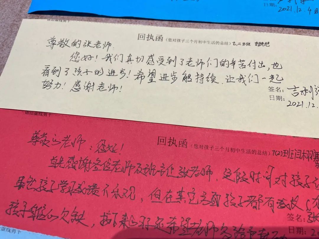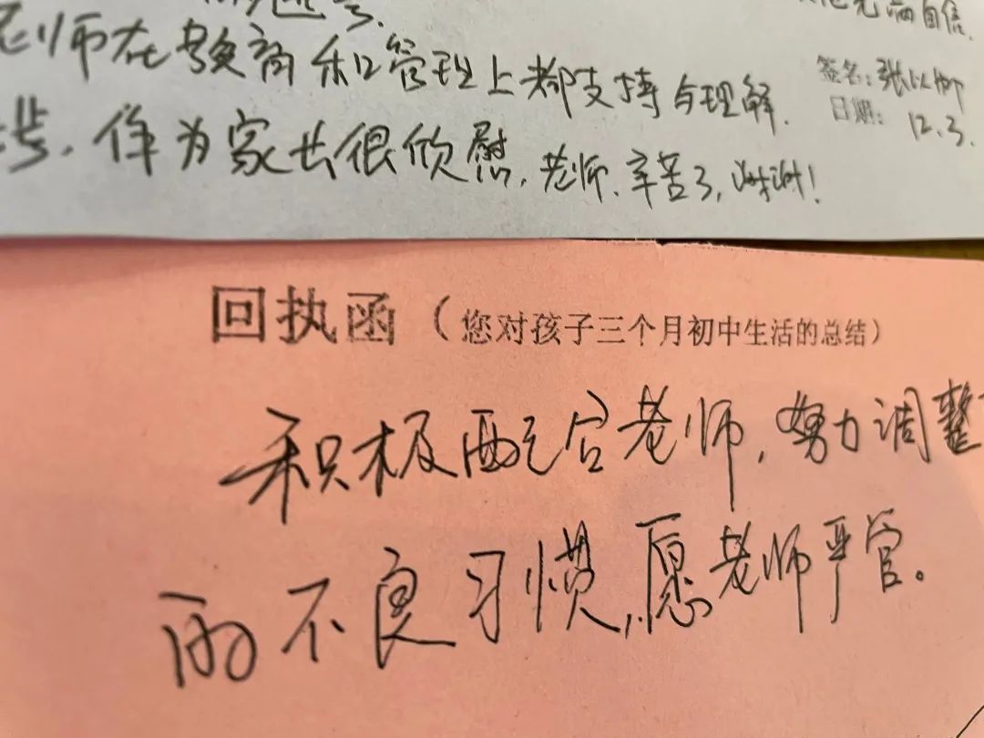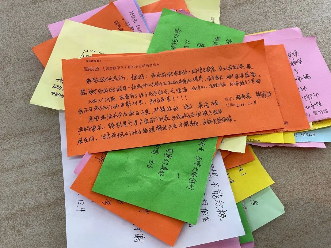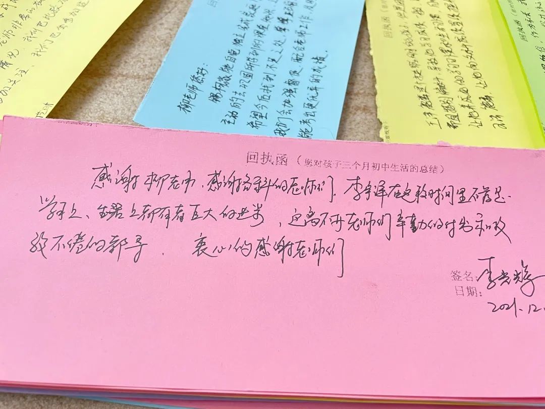 班主任將每個孩子的成績都呈現(xiàn)在了這封信里,還提出了孩子的優(yōu)點和短板,您把孩子放在哲恩我們就會全力以赴教學嚴要求,生活慈對待,讓他們成為心里有愛肩上有責任,眼里有希望,腳下有力量的可持續(xù)發(fā)展的更好的自己! 家長回執(zhí)函
