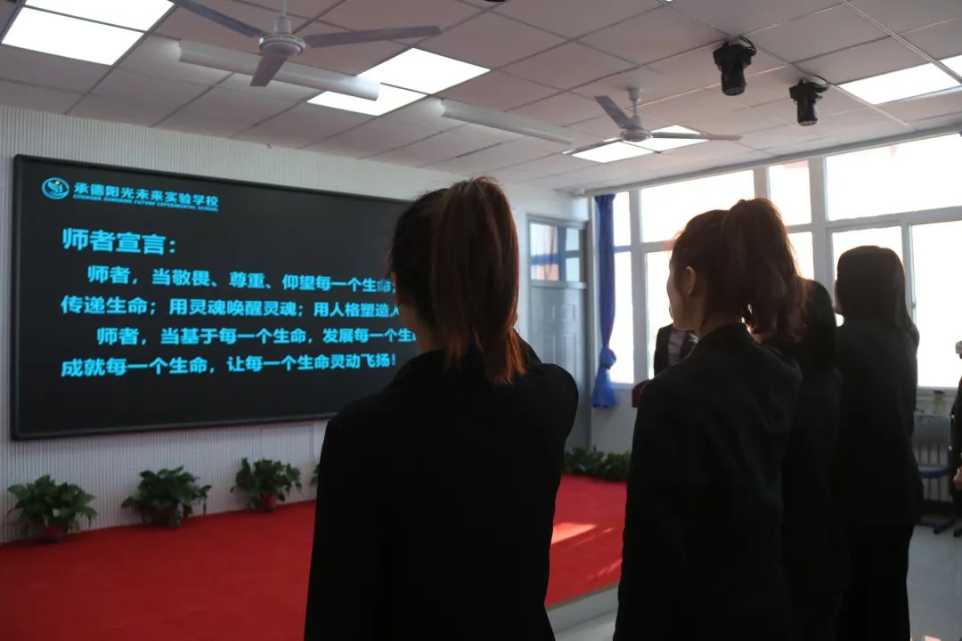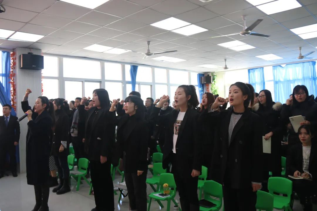 培訓會上首先由王麗華校長帶領全體教師進行師者宣誓: “師者,當敬畏、尊重、仰望每一個生命;用生命傳遞生命;用靈魂喚醒靈魂;用人格塑造人格。師者,當基于每一個生命,發(fā)展每一個生命,成就每一個生命,讓每一個生命靈動飛揚!”