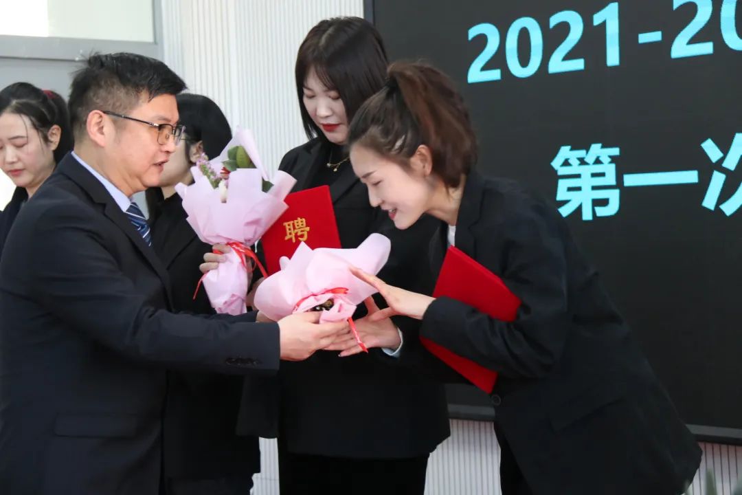 隨后,張孝文校長為新入職教師頒發(fā)聘書,并邀請新老教師代表上臺發(fā)言。