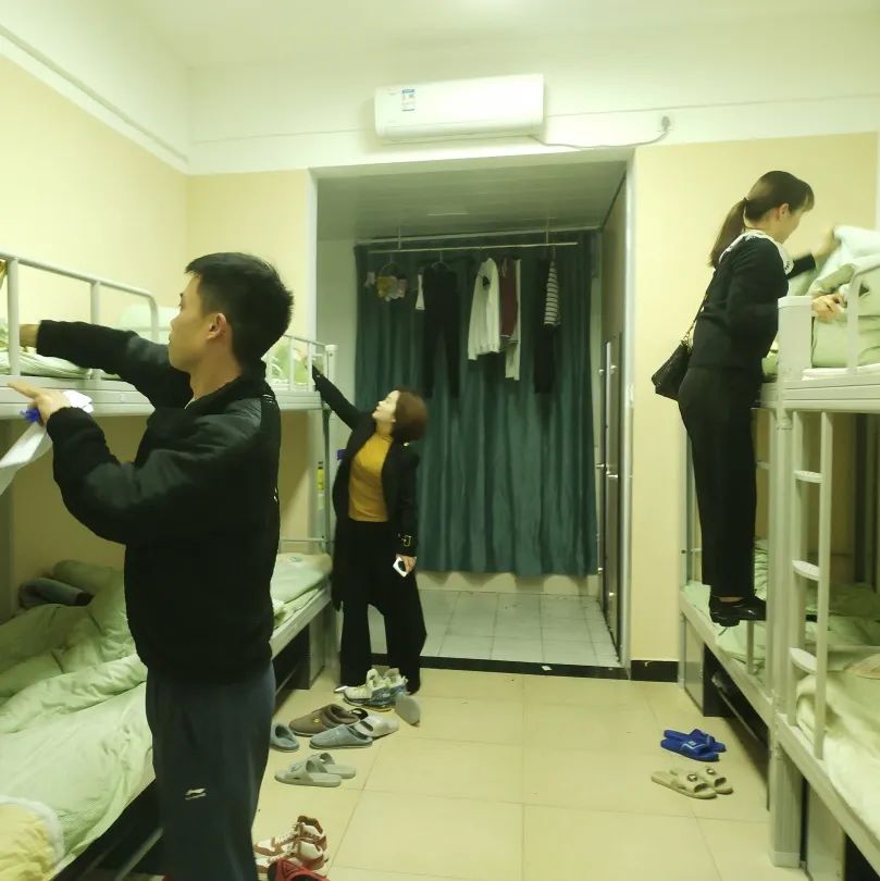 然后德育老師提出比賽要求,要求做到“快、整、齊”,隨著一聲令下,內(nèi)務(wù)整理比賽活動(dòng)開始了。同學(xué)們動(dòng)作嫻熟,運(yùn)用正確的方法,亂糟糟的被子像施了魔法一樣,方方正正,變成了整齊的豆腐塊,鞋子、洗漱用品也被收拾妥當(dāng),歸類擺放。 二十分鐘,同學(xué)們認(rèn)真的完成了寢室整理,使得雜亂擺放的宿舍面貌煥然一新,給人以賞心悅目的享受。