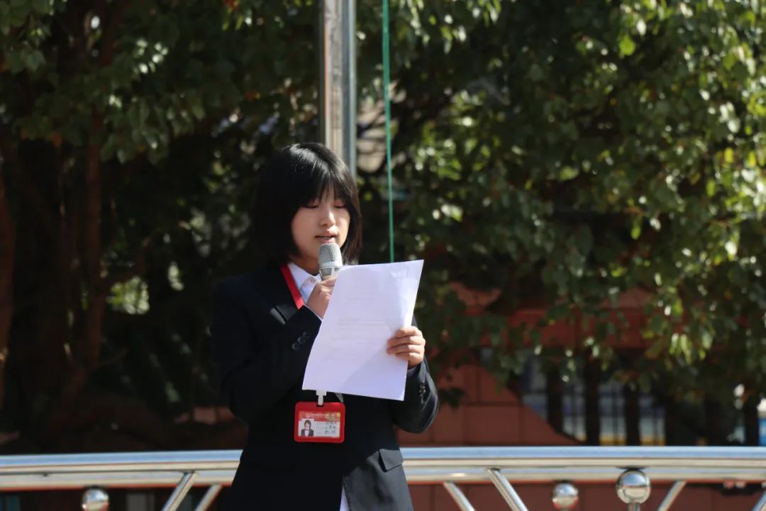我校國旗護(hù)衛(wèi)隊排著整齊的隊列、邁著鏗鏘的步伐來到了旗桿前。伴著嘹亮的《義勇軍進(jìn)行曲》,五星紅旗冉冉升起。 國旗下講話