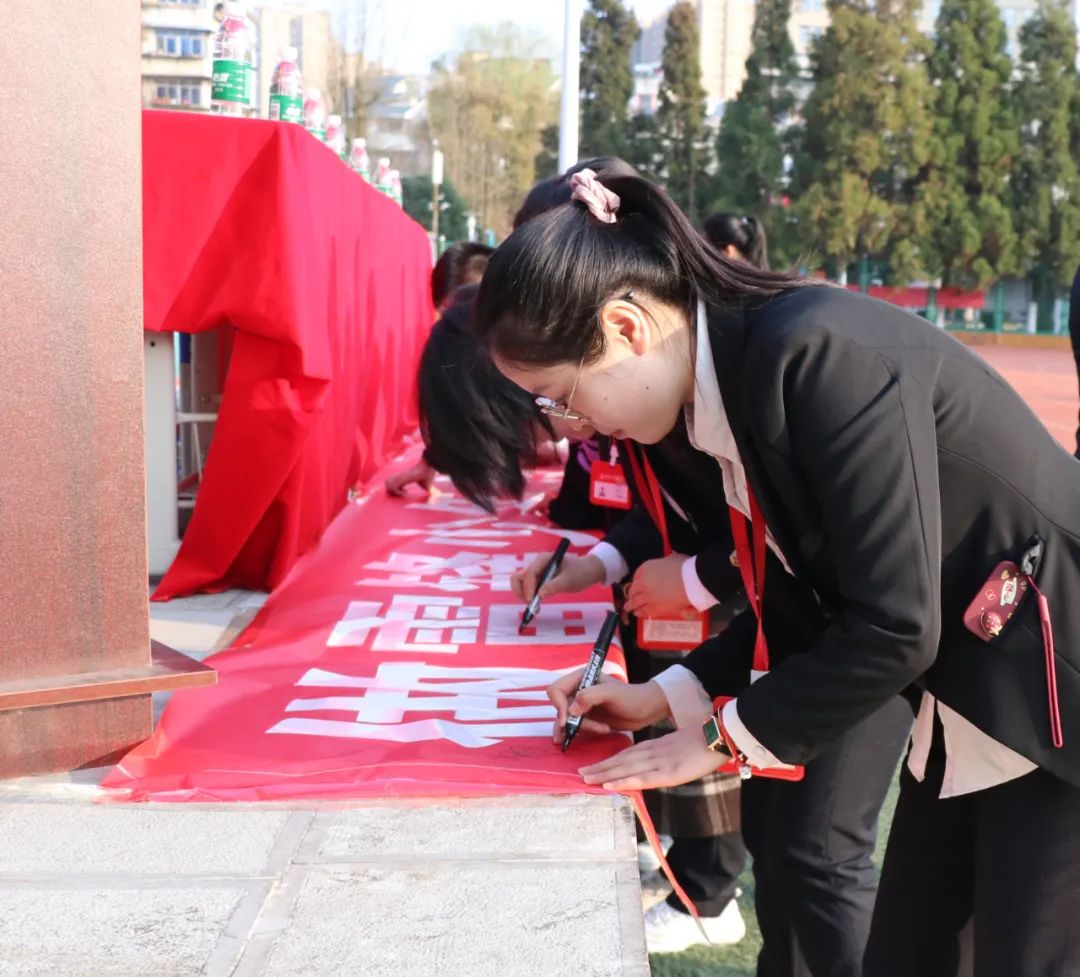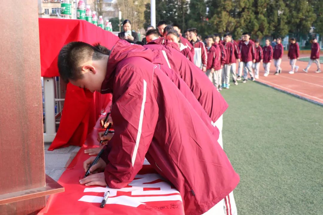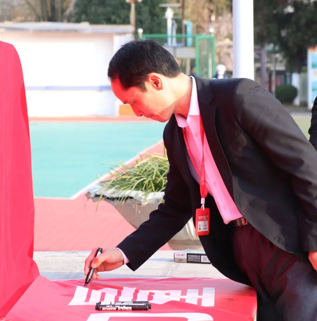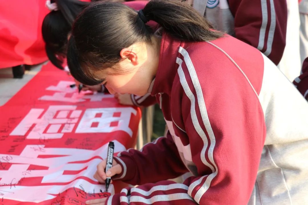 初中部老師和學(xué)生依次進(jìn)行簽名。