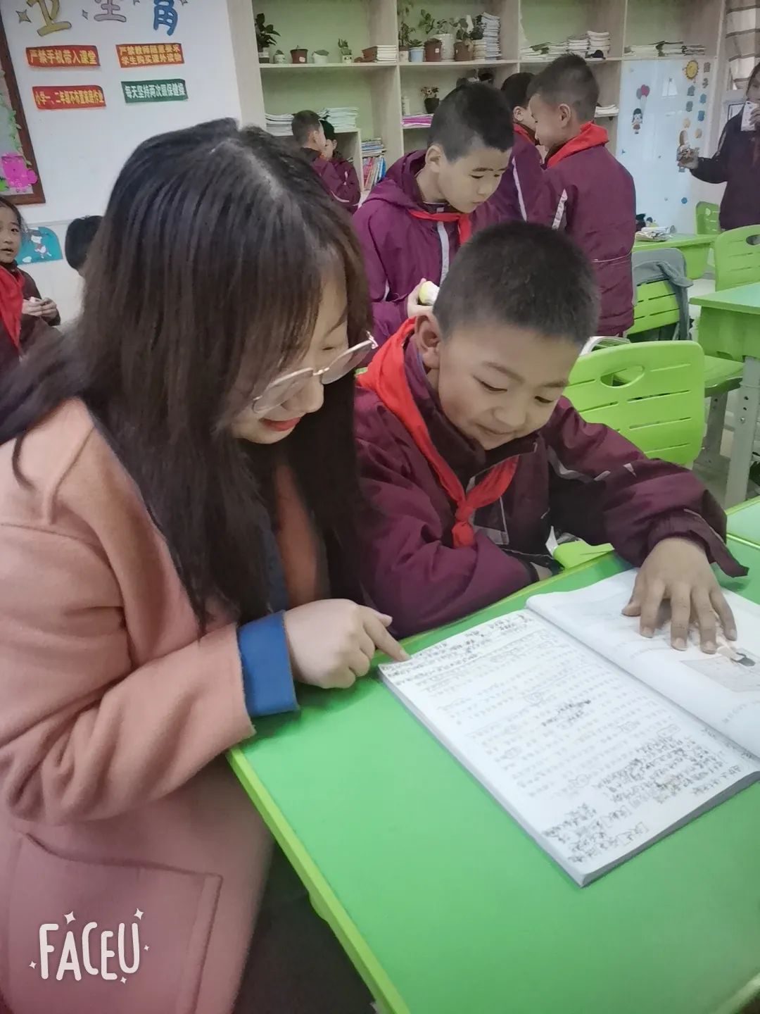 記憶最深刻的是,有一次我們一起做了一個(gè)語文目標(biāo)樹,每個(gè)孩子在便利貼寫上了自己的目標(biāo)貼在樹上,我告訴他們,付出就會(huì)有收獲,達(dá)到目標(biāo)的同學(xué),樹上就會(huì)結(jié)果子,小沈第一個(gè)起來反駁我,大聲說道:“羅老師你又不是魔法師!”我只是笑笑,告訴他們,時(shí)間是最好的魔法師,我們拭目以待。那段時(shí)間他們一下子像充滿了氣的氣球一樣,恨不得馬上騰空而起。期中考試結(jié)束后,在公布成績(jī)的前一天晚上,我把一顆顆水果糖隱蔽地貼在了他們已達(dá)成的目標(biāo)卡上。第二天早讀課,欣語先發(fā)現(xiàn)了每天在身后注視著他們的目標(biāo)樹似乎有些不同,她叫了一聲,“真的結(jié)果啦!”孩子們一圈圈蜂擁而上,圍繞著我們的小樹,都迫不及待看看自己的目標(biāo)是否結(jié)了果,歡呼雀躍間,我一口咬定自己不知道糖果怎么爬到了樹上。后來,小楊悄悄告訴我,說:“羅老師,其實(shí)我們都知道是你悄悄貼在上面的。”我們誰也沒有說破,童心是比野心更難得的夢(mèng)想,我才發(fā)現(xiàn)原來不僅是我在保護(hù)他們的童心,在我的背后孩子們也在保護(hù)著我。這次之后,他們學(xué)習(xí)語文的熱情更加高漲了,吃飯的時(shí)候還要拿著語文書邊吃邊看,還美名其曰:“有了語文書的加持食堂的飯菜更香了。”當(dāng)然這樣的行為被我嚴(yán)厲打擊了。結(jié)果晚飯后的玩耍時(shí)間,他們又拿著語文作業(yè)在操場(chǎng)上趴著寫,義正言辭地說:“先寫完作業(yè)晚自習(xí)羅老師可以講更多的知識(shí)。”被他們感動(dòng)的同時(shí),我也告訴他們,玩耍也是一種學(xué)習(xí),學(xué)習(xí)有時(shí)候更多需要的是一種不刻意的感受,去觀察去體驗(yàn)更加重要。這個(gè)事又讓我靈機(jī)一動(dòng),于是我們有了班級(jí)的“知識(shí)小百科”,這一節(jié)課表現(xiàn)好的同學(xué)可以提問語文以外的問題,“為什么白天還能看到月亮?”“鐵為什么會(huì)在泥土中消失不見?”“樹的年輪稀疏代表著什么?”無時(shí)無刻我都不在回答他們提出的數(shù)不勝數(shù)的問題,原來我還能兼任一個(gè)科學(xué)老師。但也很慶幸,他們的課外知識(shí)通過這樣的方式又得到了豐富,同時(shí)反饋于語文的學(xué)習(xí)上。班上語文學(xué)習(xí)的積極性越來越強(qiáng),我常常調(diào)侃自己是0301班語文學(xué)習(xí)傳銷頭目。