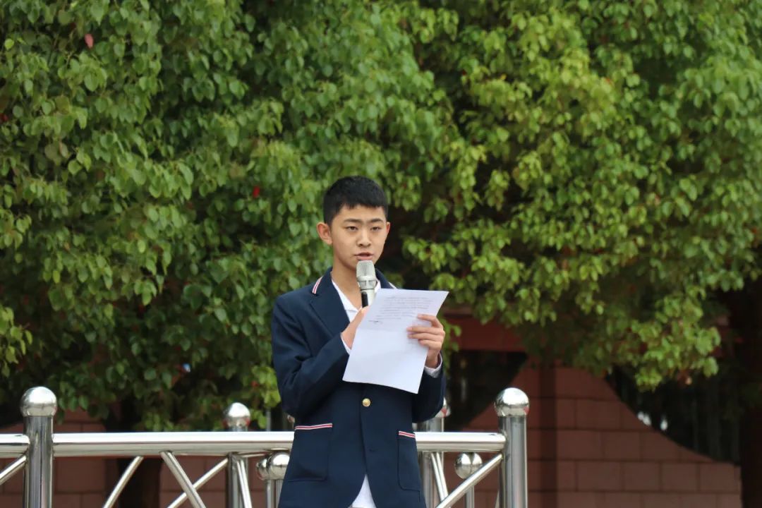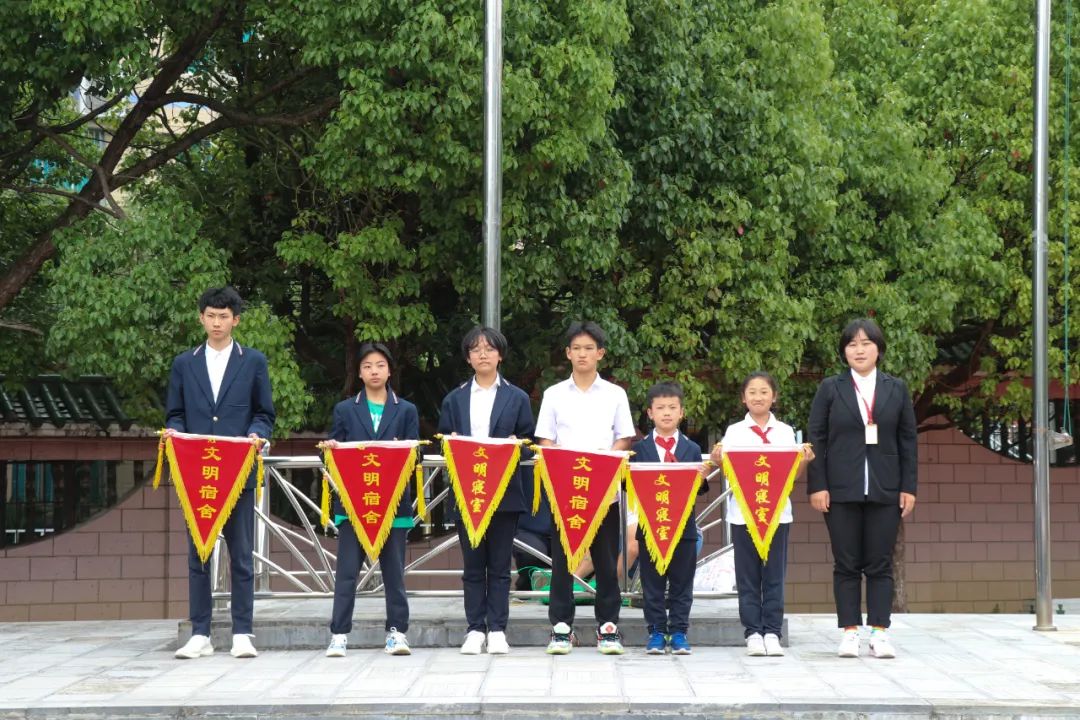 初中部德育主任楊佳樂為文明宿舍頒獎。