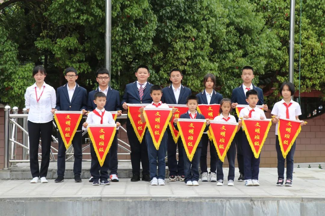 小學(xué)部德育主任羅倩為文明班級頒獎。
