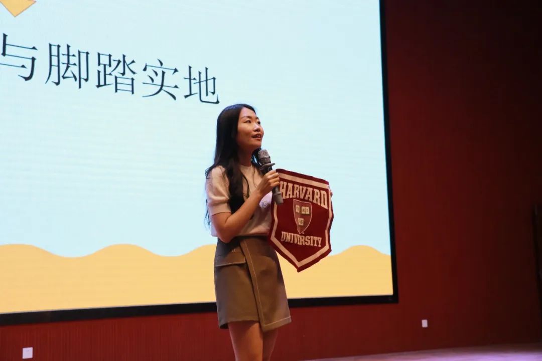 張溫煜感受到了學(xué)生們的熱情,給予了回答問題的同學(xué)們的認(rèn)可和鼓勵(lì),她說一定要先樹立夢(mèng)想,在她十幾歲的時(shí)候她便買了哈佛的校旗掛在家里以此為目標(biāo),并通過不斷的努力,朝目標(biāo)奮進(jìn)。并且她自己也在實(shí)現(xiàn)自己的目標(biāo)過程中做了很多有意義的事情,包括:為了幫助一位已經(jīng)得了白血病的孩子,她組織了同學(xué)去義賣,把所有的義賣所得全部捐給了白血病兒童;她還去給福利院的兒童們送去一些關(guān)愛,跟他們交朋友,讓他們感受到愛;組織學(xué)生們用新穎的方式表達(dá)對(duì)老師的節(jié)日的祝賀;她盡自己的微薄之力,指揮人行交通,讓城市變得更有秩序和規(guī)則,為特殊人群送去圖書,讓他們變成更好的自己等等,通過點(diǎn)點(diǎn)滴滴的行動(dòng)讓自己變成自己想要成為的人。