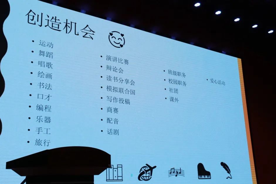 張溫煜大姐姐還講到一定要有自己熱愛的東西,體育、音樂、美術(shù)、樂器等等,其中一定要包含運(yùn)動(dòng)。因?yàn)檫\(yùn)動(dòng)會(huì)使我們擁有良好的體魄,健康的身體。而且不斷的要為自己的夢(mèng)想創(chuàng)造機(jī)會(huì)。通過一些課外的活動(dòng),提高自己的綜合素質(zhì)和能力。并且她持續(xù)拓展自己的愛好、參加模擬聯(lián)合國的比賽活動(dòng)、大學(xué)生學(xué)術(shù)辯論演講比賽活動(dòng)、還有很多的公益活動(dòng)等等發(fā)現(xiàn)自己更多的潛能。通過這些經(jīng)歷提升了自己。通過做愛心公益活動(dòng),幫助了很多人,體會(huì)到了自己的人生價(jià)值。她說道自己始終貫穿的三件事就是:學(xué)習(xí)、讀書、獻(xiàn)愛心。
