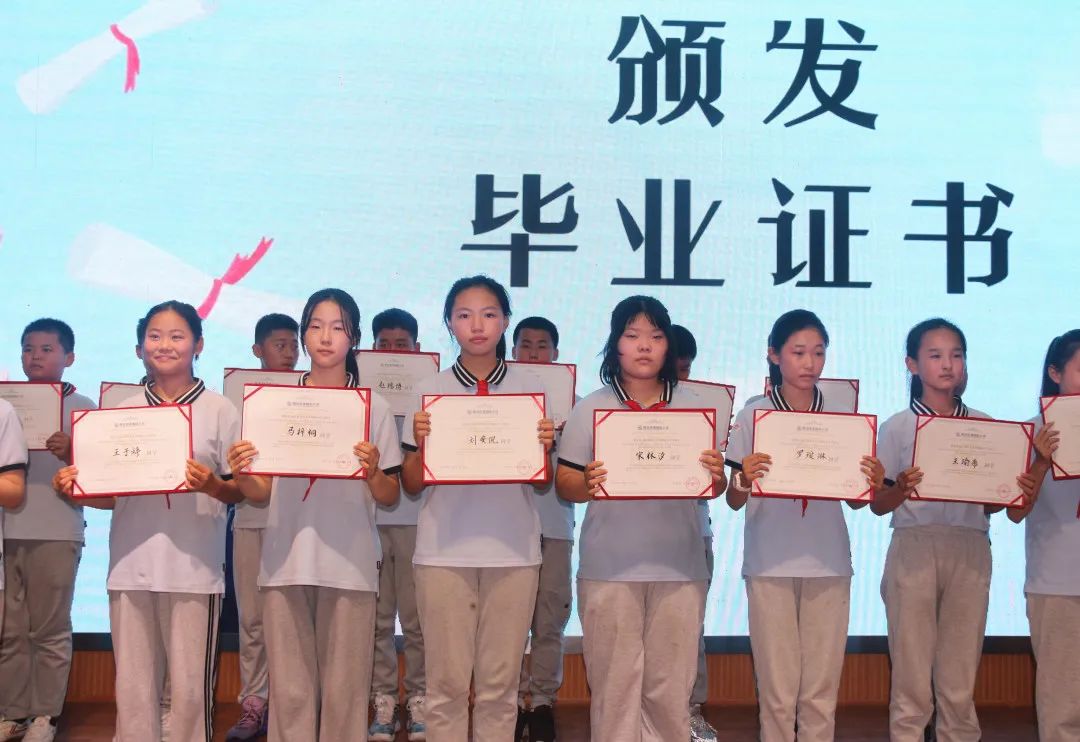 最后由各科目任課老師以及六(1)班班主任王潔老師、六(2)班班主任史玉芳老師為即將畢業(yè)的孩子們送上殷切的祝福,期望他們能在新的求學(xué)路上為自己開辟一條新的人生道路。短短的話語,濃濃的情意,蘊(yùn)含著老師們對孩子最真切的愛! 可愛的孩子們大家好: 首先感謝興風(fēng)作浪的你們,成就了乘風(fēng)破浪的老師,我們六年級的老師總掛在嘴邊“這群熊孩子們終于要畢業(yè)了”,進(jìn)入了六一就想著還有一個月老師就解放了,拍完畢業(yè)照再有一星期老師就解放了,考完數(shù)學(xué)還有一科就解放了,我們就這樣數(shù)著數(shù)著你們就真的畢業(yè)了! 我們的故事,始于初秋,終于盛夏??傆X得來日方長,一轉(zhuǎn)眼就到了青春的散場,一路走來,老師見證了同學(xué)們的成長,一張張熟悉的面孔,都深深刻在了我的腦海。回想起我們在一起生活學(xué)習(xí)的時光里,點點滴滴猶在昨日,親愛的同學(xué)們,你們是否還記得我們初次見面時的場景,是否還記得教室里留下了我們開心歡樂的微笑,印記了我們刻苦拼搏的身影,也銘刻著我們豪邁的誓言,在陽光的日子記錄著我們成長的足跡,雪后的操場上留下了我們盡情的歡笑,學(xué)校的一草一木見證了我們的成長與歡樂,教室里的一張張獎狀,述說著我們努力的結(jié)果,我們朝夕相處,課堂上是師生,課下是朋友,彼此之間建立了勝似親人的師生情。所有這些都是我們最最珍貴的回憶。在我們這個充滿愛與被愛的精靈部落里,每一位同學(xué)被王老師批評教育過,每一位同學(xué)也被王老師用心深愛著,忘不了我們之間的每一次過往;忘不了你們一次次精彩的表現(xiàn);喜歡你們時而一本正經(jīng),時而又調(diào)皮可愛的模樣!原來不知不覺中,這一點一滴早已深深刻在了我的腦海里。 親愛的孩子們,你的一生,我只送一程,自此一別,你們將奔向人生另一段征程,愿你們懷揣著對夢想的炙熱奔赴山海。萬般不舍也終要離別,愿我的男孩女孩們乘風(fēng)破浪展翅飛翔! 最后我要特別感謝對我工作默默支持的全體家長朋友們,是你們讓我對自己的工作充滿了動力和熱情,優(yōu)秀的精靈部落有你們的一份努力,再次感謝大家。 親愛的六2班孩子們: 這是在心中醞釀了很久很久的一封信,這是遲遲都不愿落筆的一封信。因為我知道你們終究會離去,你們會長大,長大了就會朝著夢想飛翔。“慈母手中線,游子身上衣”,在即將分別的今天,我的心中滿是牽掛,此時心中有萬語千言,變成了這短短的一封信。 回想過去,一幕又一幕的場景在我眼前閃現(xiàn),這一年來,我們同快樂同悲傷,我們共呼吸共命運(yùn)。我依然記得你們課堂上精彩的發(fā)言,活動中出色的表演,比賽時奮力的拼搏,也忘不了你們調(diào)皮的笑臉,搗蛋的怪相,沖動的尖叫與你們相處的點點滴滴,將如同一只只蝴蝶飛臨窗前,帶給我春天般美好回憶。 回想第一次與你們見面,我內(nèi)心是膽怯的,因為我覺得六年級的學(xué)生已經(jīng)有了自己的思想,自己的主見,怕自己管不住你們。當(dāng)看到你們洋溢著好奇和探究的笑臉,我的內(nèi)心一下子就安定了,你們是那么單純,那么可愛。還記得我曾跟你們說,一個人活著就要有夢想嗎?因為,只要你們心中有夢想,無論遇到多大困難,無論你們身處何方,都會想辦法克服,堅定不移地朝著理想前進(jìn)。這樣你的生活就會充滿希望,富有色彩。 生機(jī)勃勃的春天,我們在校園種下了一棵小樹,也種下了我們美好的心愿——留下的是美好,帶走的是希望。再見了,親愛的同學(xué)們,在畢業(yè)的當(dāng)口,老師默默地祝福著你們,希望你們越來越好。不用緊張,未來還會有很多的考試,也會面臨很多的挑戰(zhàn),只要相信自己,認(rèn)真,細(xì)心,盡自己最大的努力,那就是成功。最后請你們牢記我們的班級口號:天道酬勤,厚積薄發(fā),最后祝愿你們帶著對未來美好的憧憬,越飛越高,越飛越遠(yuǎn)! 典禮接近尾聲,由郗校長為畢業(yè)生頒發(fā)畢業(yè)證書。問好、鞠躬、接過畢業(yè)證書,簡單的三個動作,是這六年時光最好的見證。一個微笑,一次握手,一聲祝福,愿每一位畢業(yè)生踏遍青山,歷盡千帆依舊少年。
