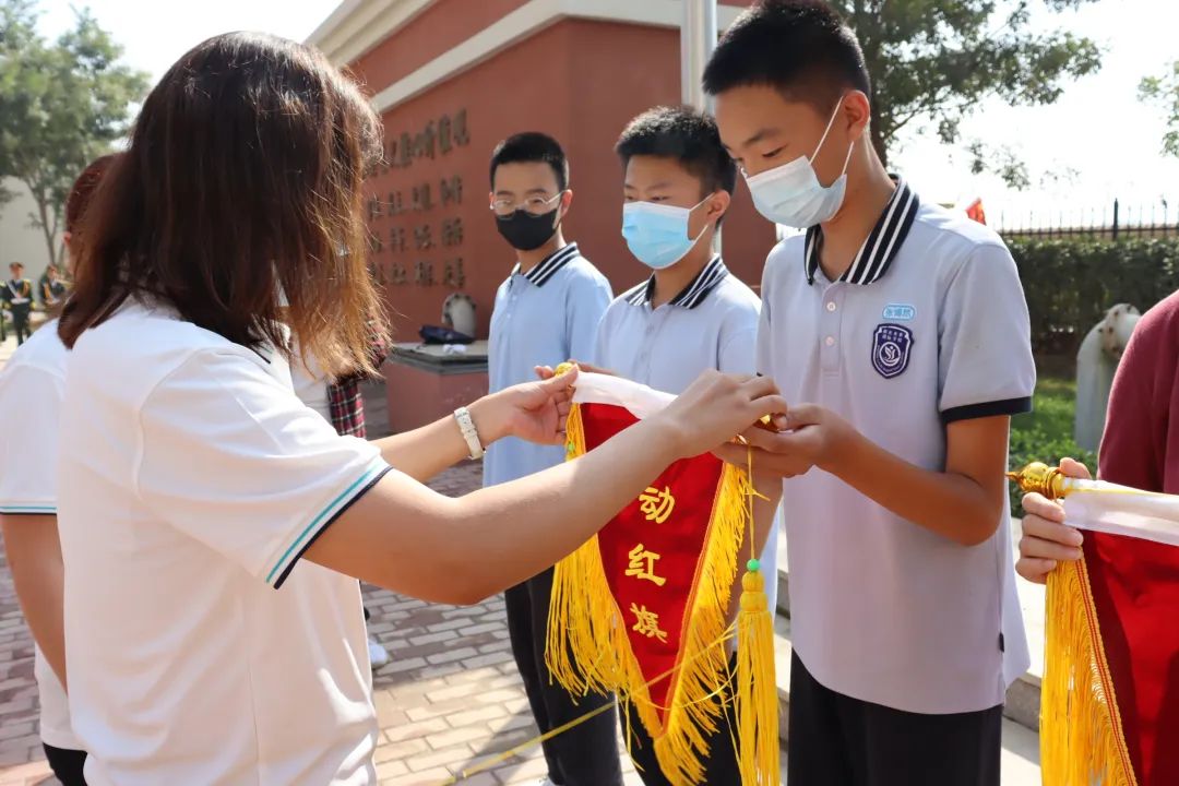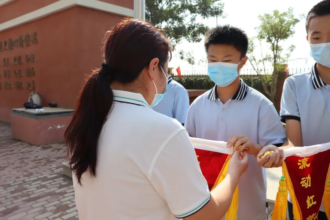 趙春英老師帶領(lǐng)全體教師宣誓 師者宣言: 師者,當敬畏、尊重、仰望每一個生命; 用生命傳遞生命; 用靈魂喚醒靈魂; 用人格塑造人格。 師者,當基于每一個生命, 發(fā)展每一個生命, 成就每一個生命, 讓每一個生命靈動飛揚! 06頒發(fā)流動紅旗