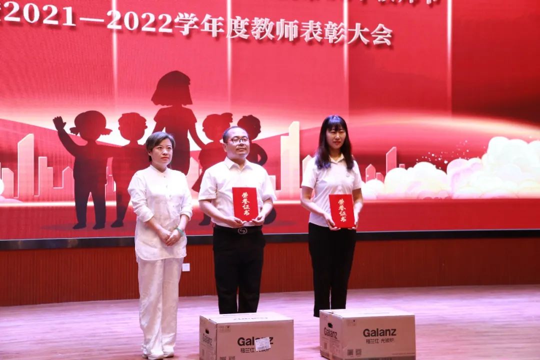 領導為2021--2022學年度受表彰教師頒獎 校家委會主任張欣女士為招生特殊貢獻獎教師頒發(fā)證書及獎勵