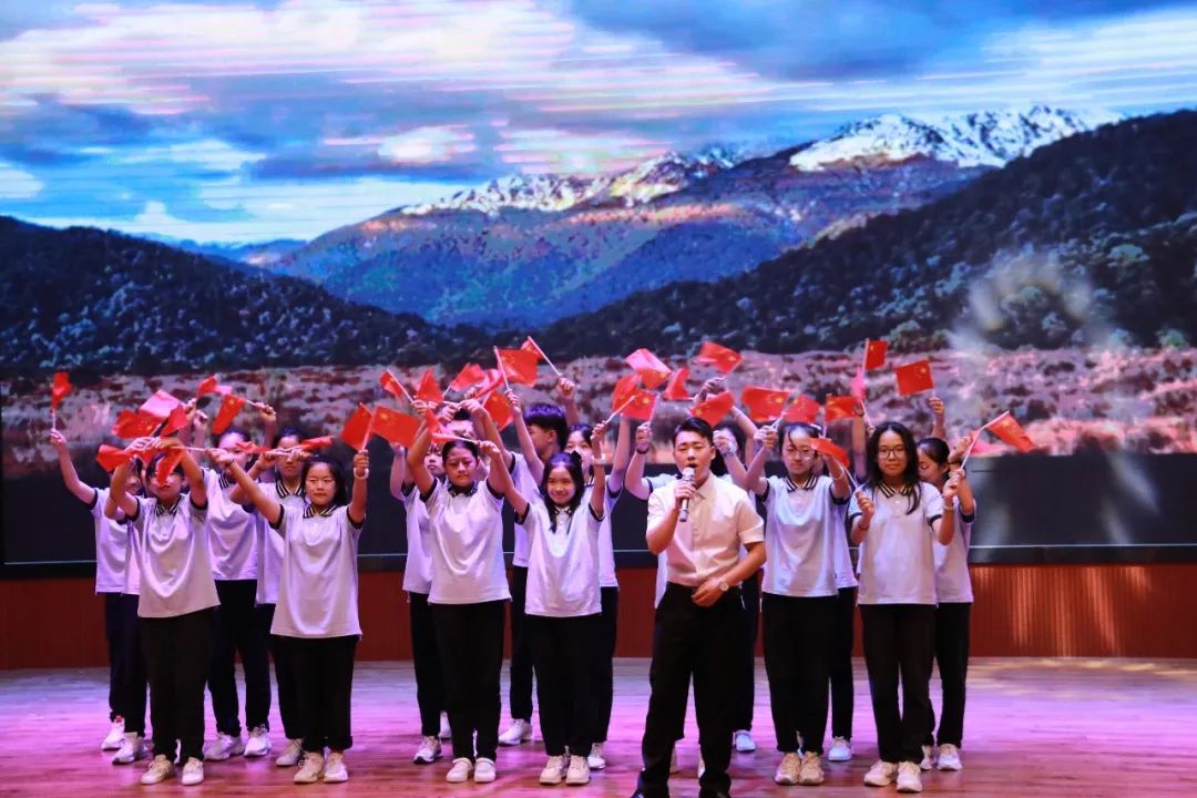 哪有什么歲月靜好,不過是你們在替我負重前行。 感恩老師感恩父母、感恩朋友、感恩生活!聽我說謝謝你,2022年因為有你溫暖了四季。聽我說謝謝你,無論歲月變換,愛你唱首歌。感恩所有的遇見與陪伴,愿2022年所有的美好與溫暖如約而至。初中部女生為觀眾帶來的《聽我說謝謝你》獲得了陣陣掌聲。