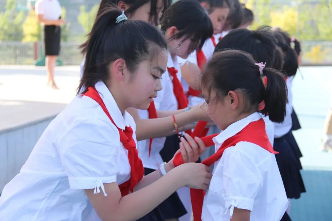 6月1日,隊(duì)旗飄飄,鼓號(hào)聲聲,我校小學(xué)部一年級(jí)的21名同學(xué)迎來(lái)了小學(xué)生涯中一個(gè)重要的時(shí)刻,他們戴上了鮮艷的紅領(lǐng)巾,光榮地加入了少年先鋒隊(duì),成為了共產(chǎn)主義接班人!