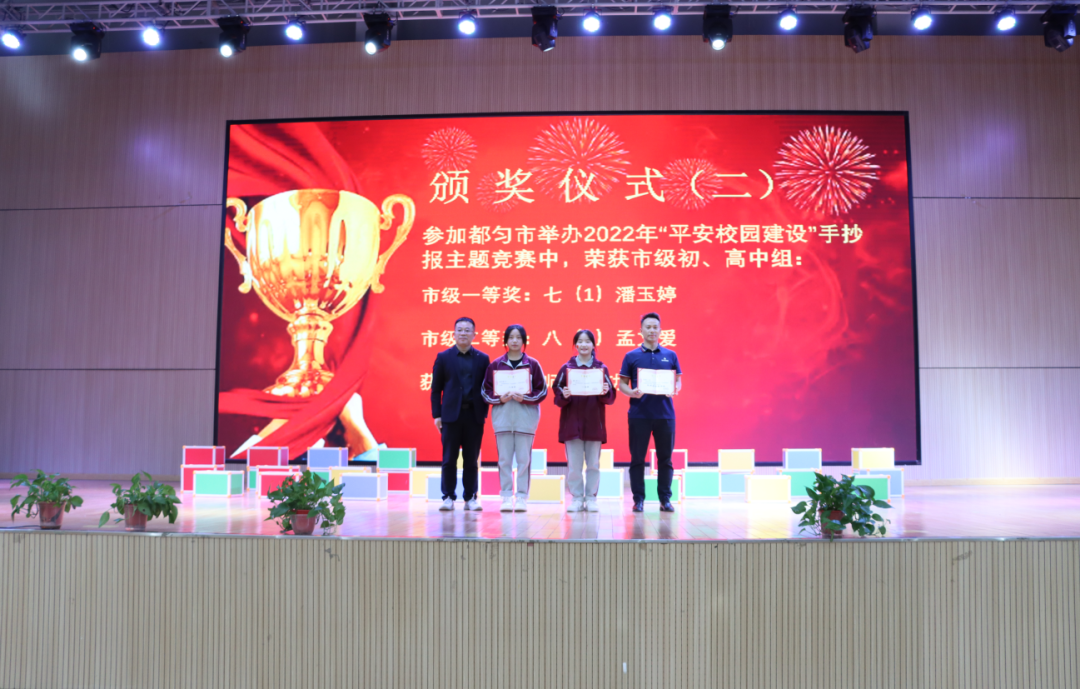 Δ都勻市2022年“平安校園建設(shè)”手抄報主題競賽初、高中祖 市級一等獎 七(1)班潘玉婷 市級二等獎 八(1)班孟文愛 優(yōu)秀指導(dǎo)老師 吳功廣