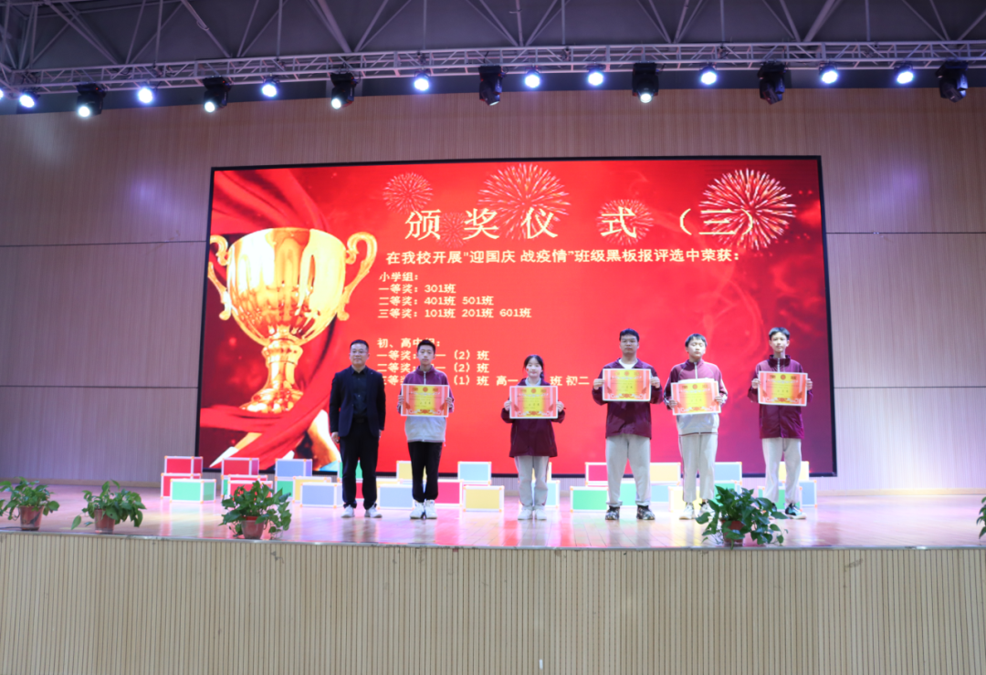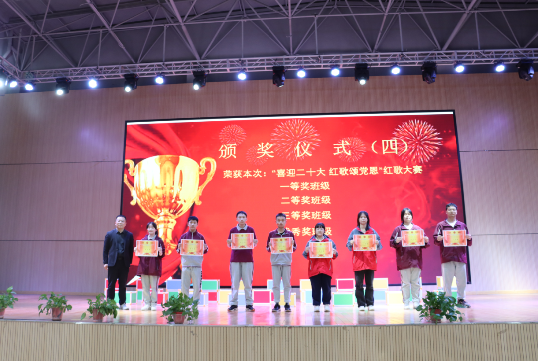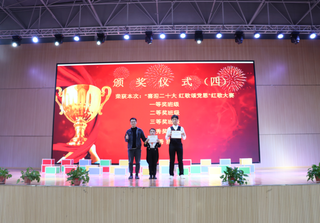 激情嘹亮的歌聲,勾出百年難忘的回憶,收放自如的指揮,描繪氣勢磅礴的激情。紅歌如畫,展現(xiàn)光輝歷程,學(xué)子如歌,道出豐功偉績,是拳拳愛國心、殷殷愛黨情,更是陽光學(xué)子堅持不懈、步履不停的誓言! 頒獎儀式 比賽結(jié)束后,主持人公布了此次系列活動的獲獎名單,校領(lǐng)導(dǎo)為獲獎學(xué)生和班級頒發(fā)證書。