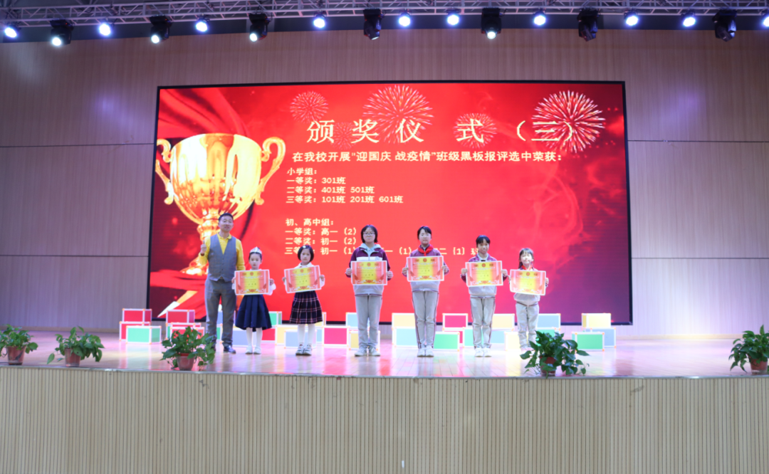 Δ我校開展“迎國慶 戰(zhàn)疫情”班級黑板報評小學(xué)組 一等獎 三(3)班 二等獎 四(1)班、五(1)班 三等獎 一(1)班、二(1)班、六(1)班