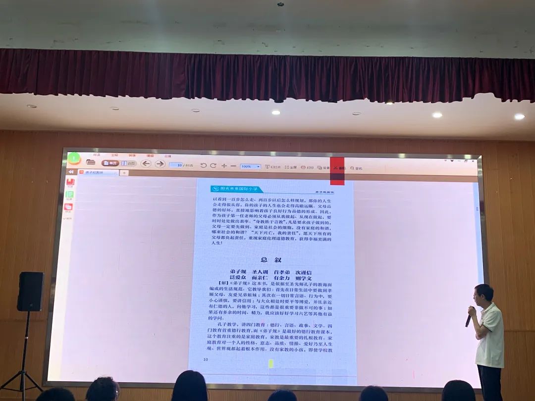 為了弘揚(yáng)中華優(yōu)秀傳統(tǒng)文化,堅(jiān)定文化自信,提高大家的思想道德素養(yǎng)。 2022年8月21日,陽光未來小學(xué)全體老師在校多功能廳進(jìn)行了一次有意義的《弟子規(guī)》、《師道》誦讀研學(xué)活動(dòng)。