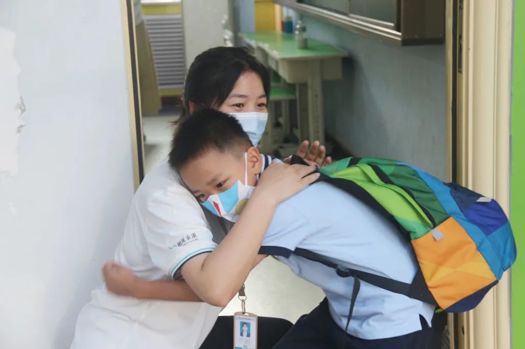 老師 我想你 隨著溫暖的陽光,一年級同學(xué)們走進(jìn)了校園,一年級(1)班的班主任劉小寒老師和一年級(2)的班主任李曉燕老師在班門口熱情的等待著同學(xué)們,經(jīng)過了短暫的周末,同學(xué)們迫不及待重返班級,與老師們開心擁抱著。