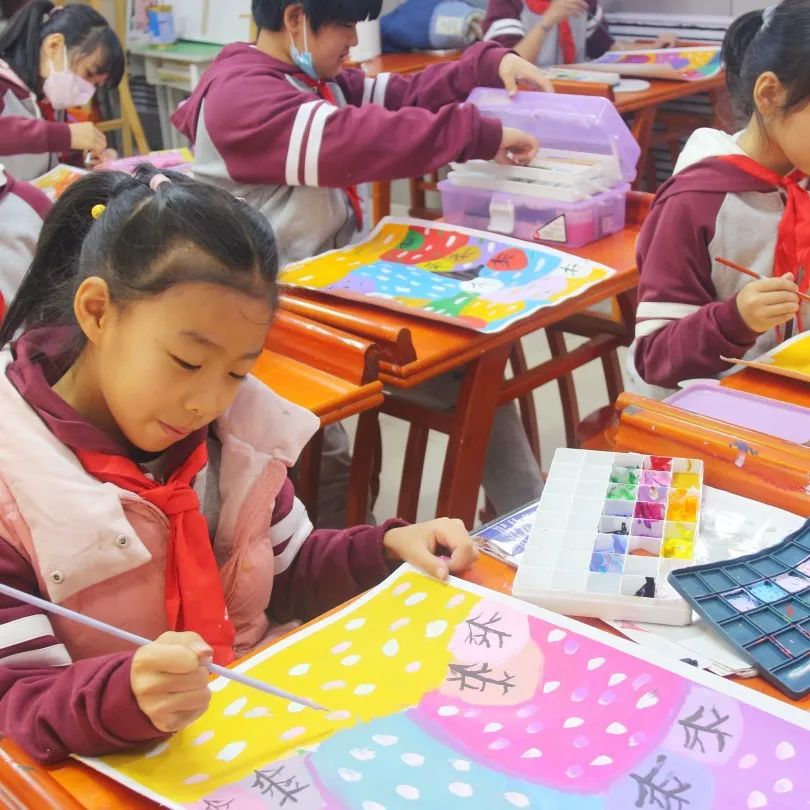 水粉畫顏料用水調(diào)色,操作簡單,易學(xué),且表現(xiàn)力強,趣味性高。畫面明快、灑脫、概括,適合兒童揮灑涂抹抒發(fā)情感,深受兒童的喜愛。水粉畫是培養(yǎng)兒童色彩美感,提高兒童色彩審美趣味的重要課程。