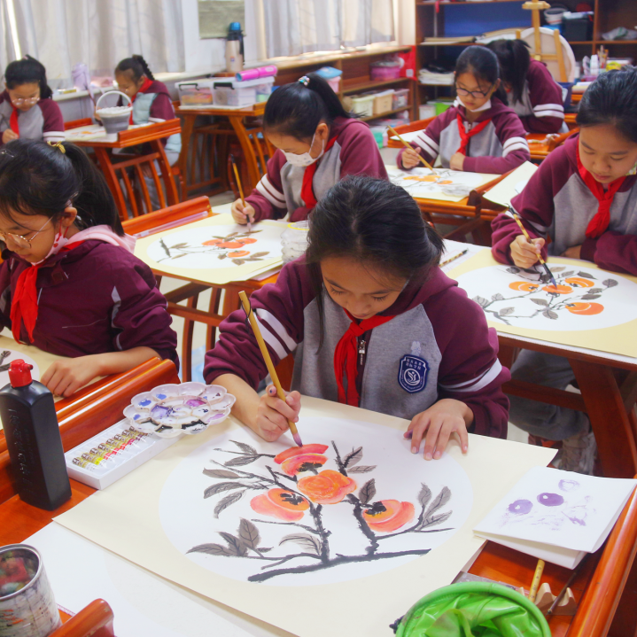 孩子們通過參考和欣賞團花的圖片素材,運用折紙、剪貼、創(chuàng)意裝飾完成一幅幅美妙的作品。鍛煉孩子們小手指肌肉群的同時又能培養(yǎng)孩子耐心做事、不急不躁的品質(zhì)。創(chuàng)意無限,樂趣多多。 國畫