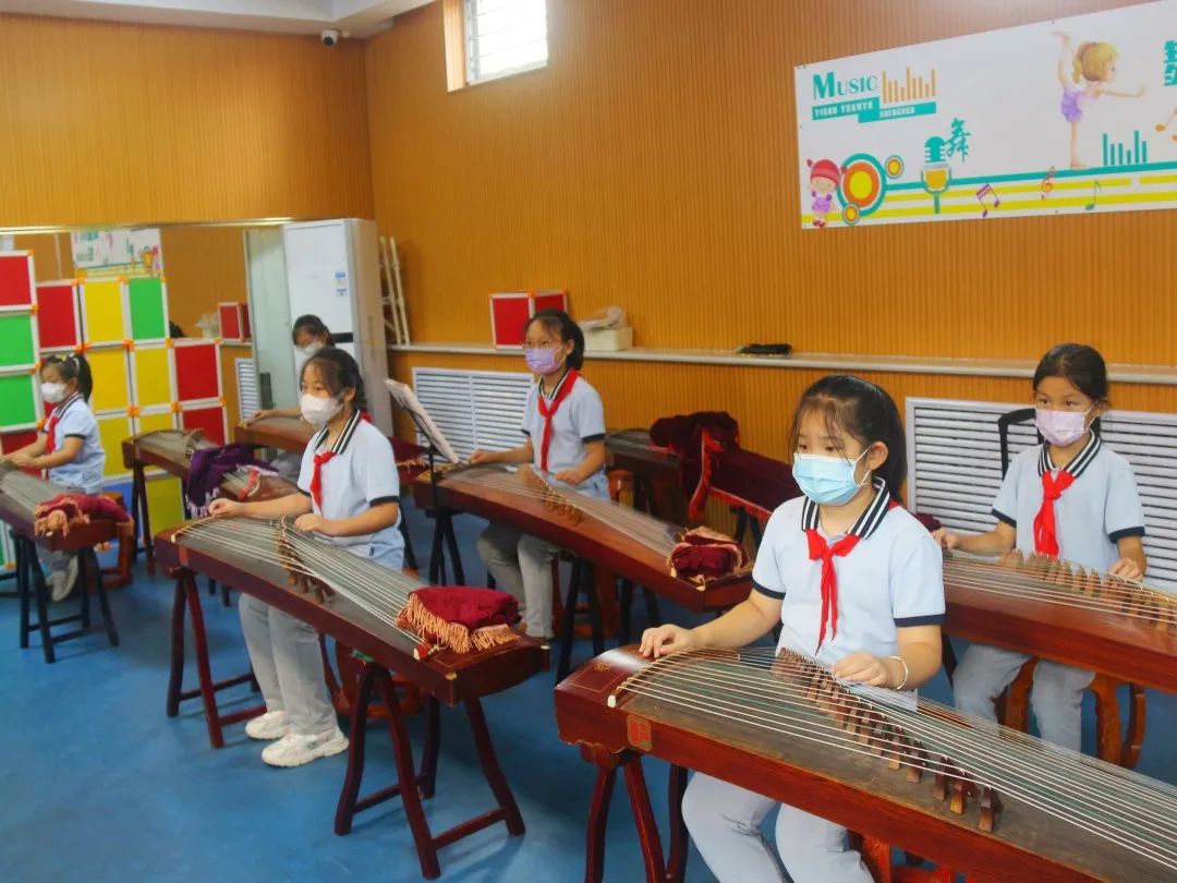 舞蹈拓展課的舞種有中國古典舞、民族舞、爵士舞、街舞、敦煌舞、鬼步舞。舞種多樣化,也通過基本功訓(xùn)練,從而達(dá)到形體優(yōu)美、動作協(xié)調(diào)、肢體靈活、柔韌性增強,并且能夠鍛煉毅力、提高身體素質(zhì)、加強合作能力、集體榮譽感。讓陽光學(xué)子擁有健康體魄,優(yōu)雅氣質(zhì),挺拔身姿,增強美育(美麗、豐富的心靈)、德育(善良、高貴的靈魂)、智育(自由、獨立的頭腦)的全面發(fā)展。 古箏